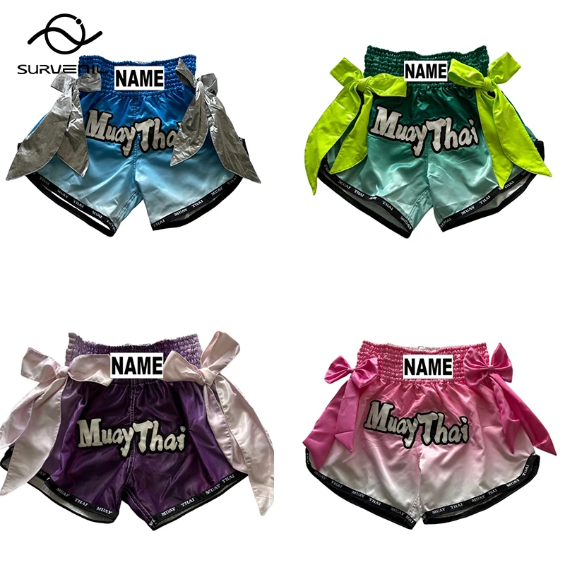 Short de Kickboxing brodé Muay Thai, short en Satin pour boxe thaïlandaise pour hommes, femmes et enfants, vêtements de combat d'arts martiaux