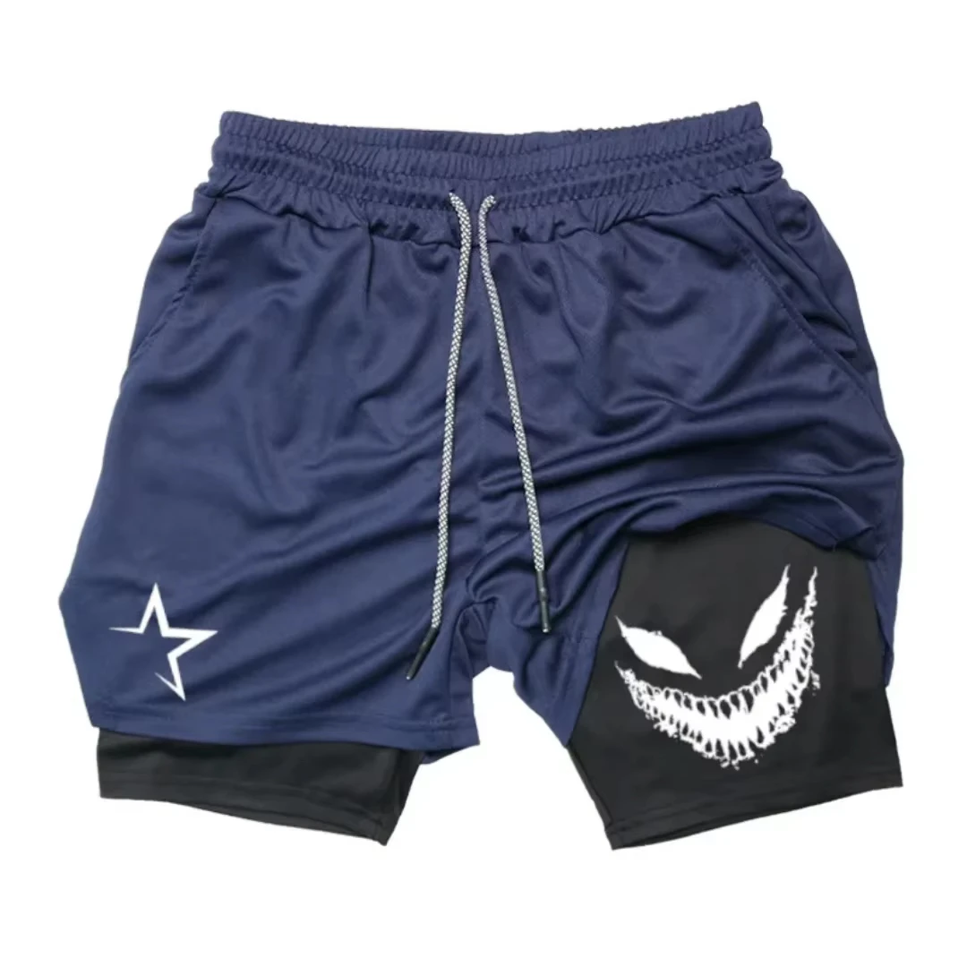 Short de sport respirant et à séchage rapide pour hommes avec imprimé sourire du diable 2-en-1 Gym Performance RL0502