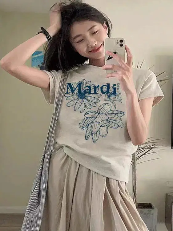 T-shirt pour femme Mardi l Daisy Lily Tee Flowers ort Sve, haut tendance en or et argent, coupe décontractée, coton, col rond