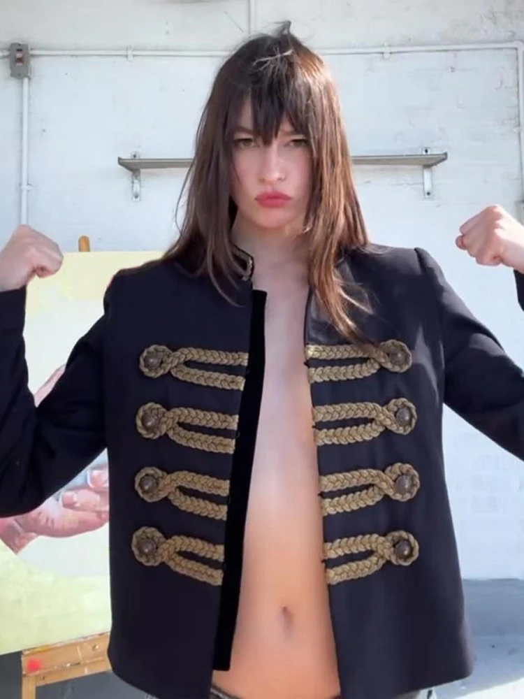 Veste Courte Napoléon Tendance Femme Col Montant Vintage Manches Longues Blouson Court Printemps 2026 Nouvelle Collection Vêtement d'extérieur Femme Style Urbain