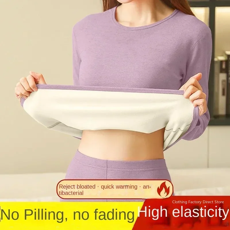 Nouveau ensemble De sous-vêtements thermiques pour femmes De velours laine De meulage vêtements et pantalons d'automne sous-vêtements thermiques femmes grande taille couleur unie