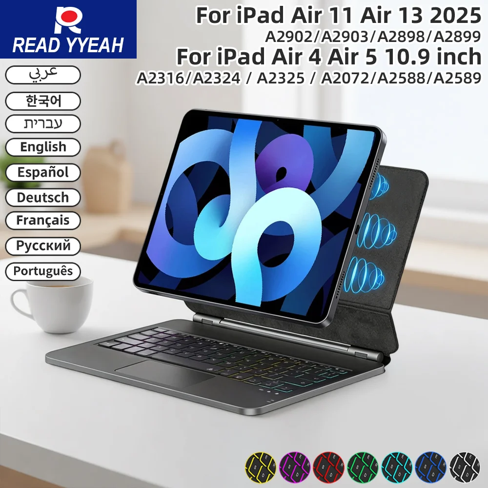 Étui pour clavier magique pour iPad Air 13 pouces M3 2025 M2 Pro 12.9 tablette espagnol portugais hébreu allemand coréen housse de clavier Folio