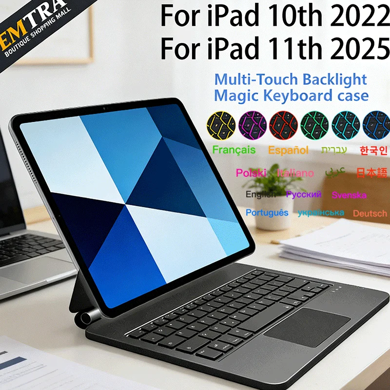 Clavier magique pour iPad 10 10e A16 11e Pro 11 2022 2021 2020 Air 4 5 10.9, coque intelligente multi-touch avec pavé tactile rétro-éclairage