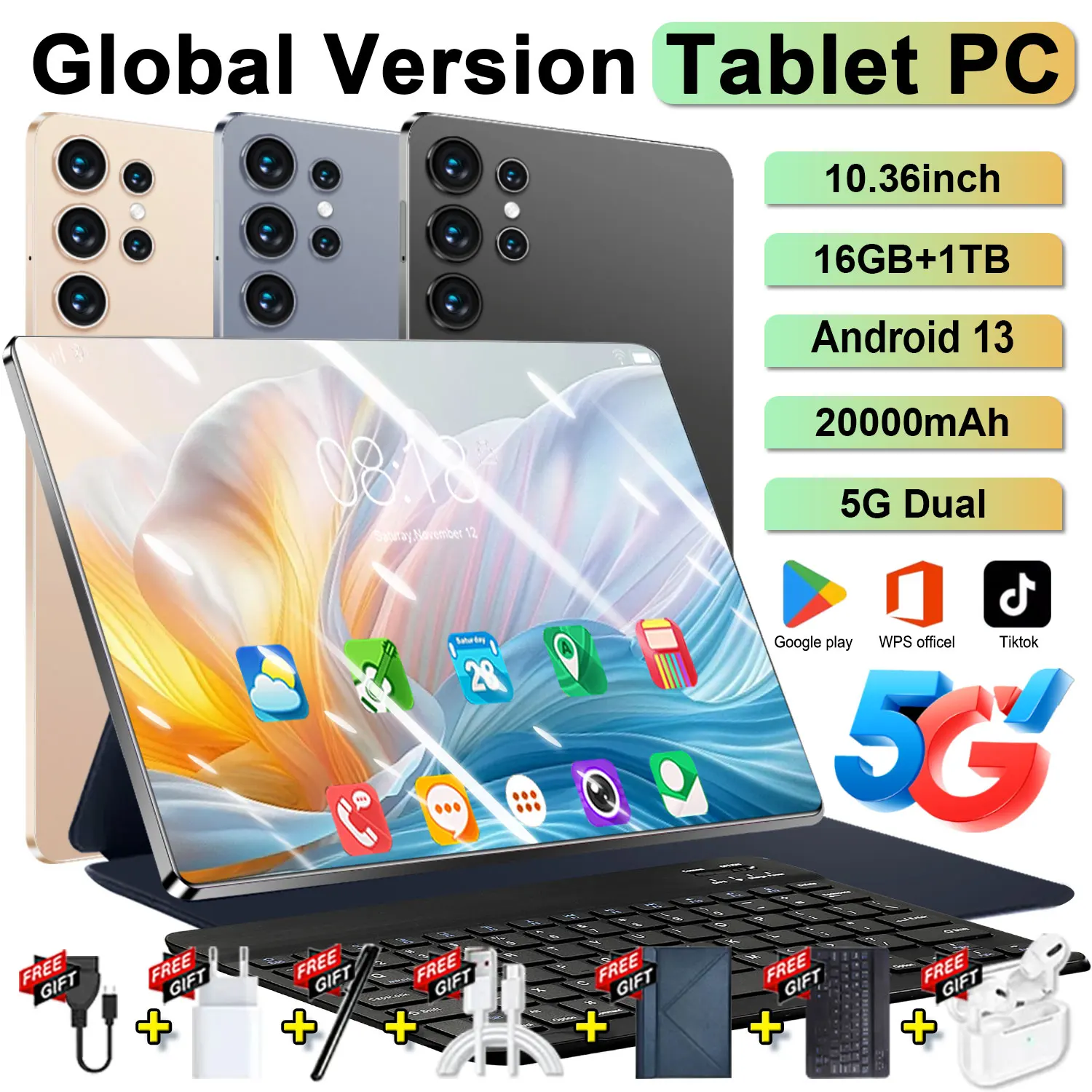 Tablette HD 10,36 pouces 20000 mAh, version globale, 5G, Android 13.0, 16 Go + 1 To, 14 cœurs, double SIM, GPS, WIFI, WPS Office, nouvelle tablette originale