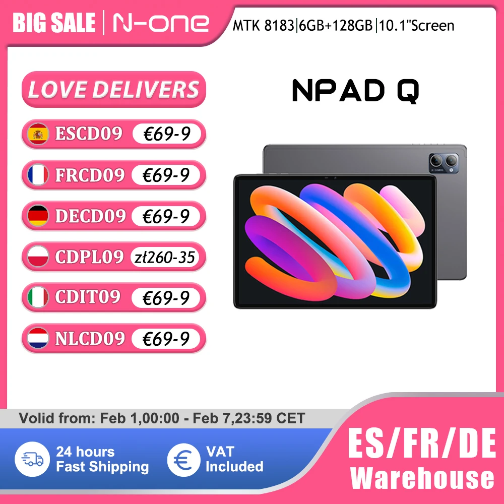 N-ONE NPad Q 10.1 en effet Tablette PC Android 13 6 Go de RAM + 128 Go Dean 8 cœurs MTKAVI 1280*800 FHD IPS WiFi BTpig Port Type-C