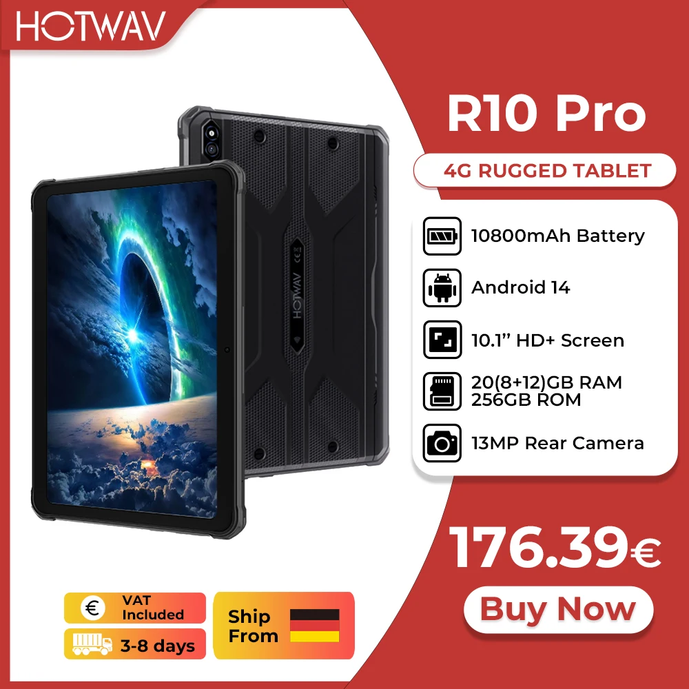 [Navire depuis l'allemagne] tablette robuste HOTWAV R10 Pro 10.1 ''HD + écran 10800mAh batterie Android 14 8GB 256GB 13MP 4G tablette mondiale