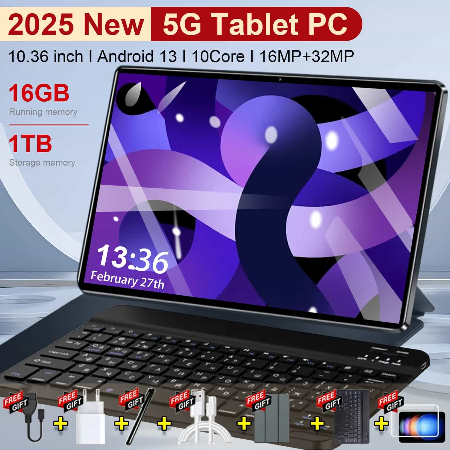 2025 tablette Android d'origine 10.36 pouces HD 10 cœurs 16GB + 1TB Google Play 5G GPSWIFI 12000mAh double SIM double caméras tablettes