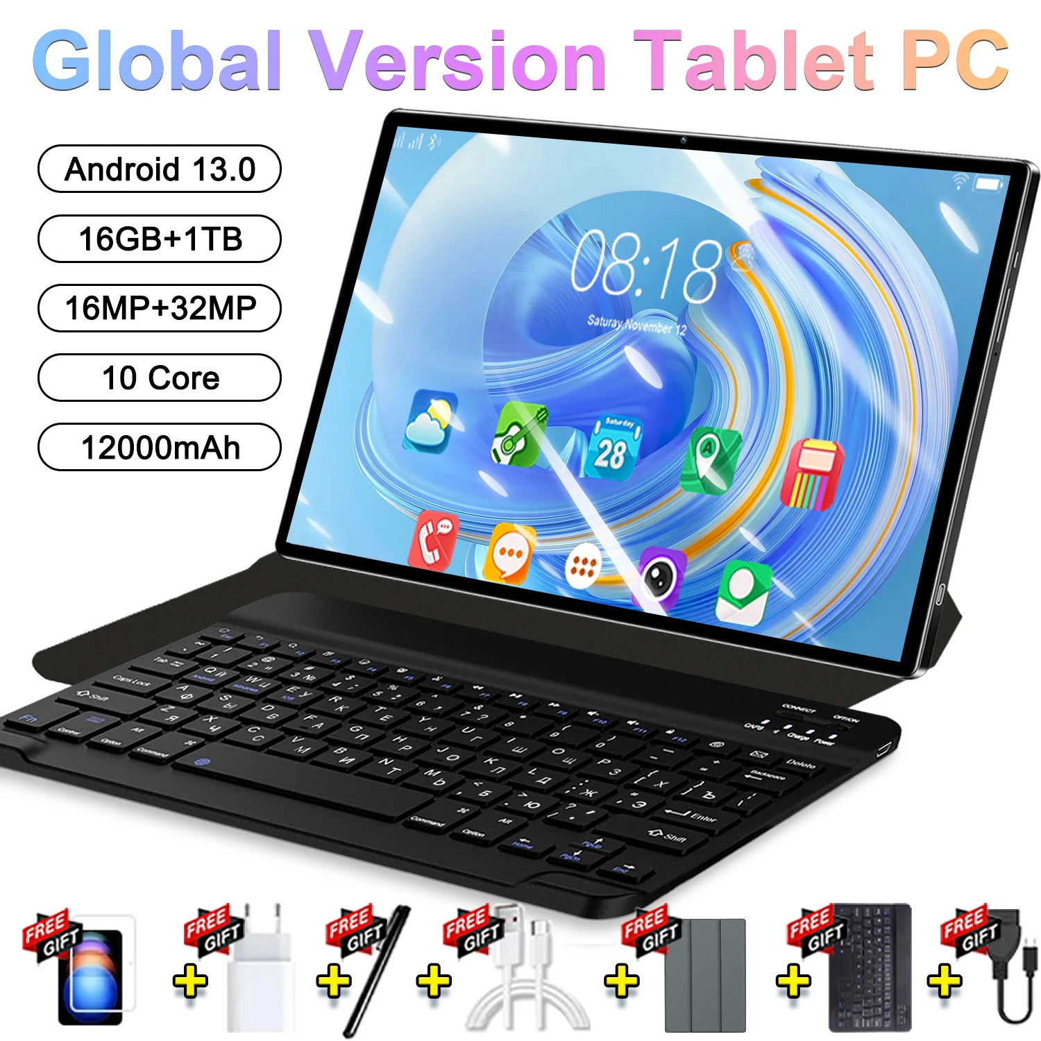 2025 Global nouvelle tablette 10.36 pouces Android 13 Pad 12GB 512GB 14 cœurs WPS WIFI Bluetooth haute 4K HD 5G 20000mAh tablettes