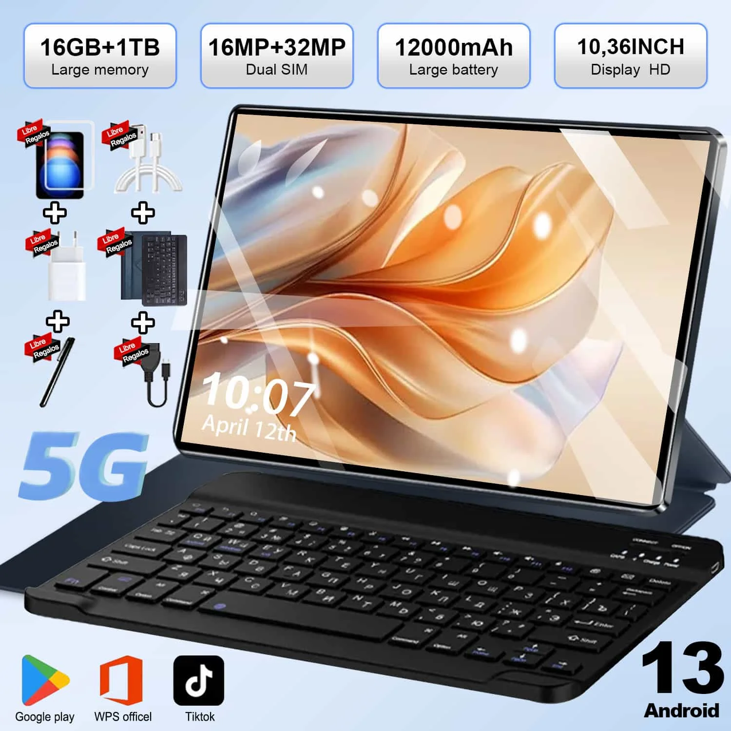 Tablette haute Performance 10.36 pouces, 5G, Android 13, fonction d'appel double SIM, 12 go de RAM, 512 go de ROM, batterie 12000mAh, WiFi, Bluetooth