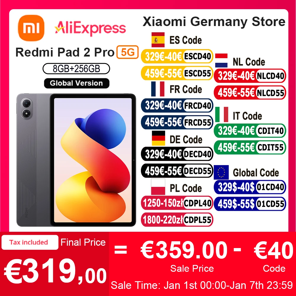 Version mondiale Xiaomi redmi pad 2 pro 5G 12000mAh batterie 12.1 "2.5K écran cristallin 8GB 256GB connectivité 5G Flexible 5G + eSIM Xiaomi HyperOS