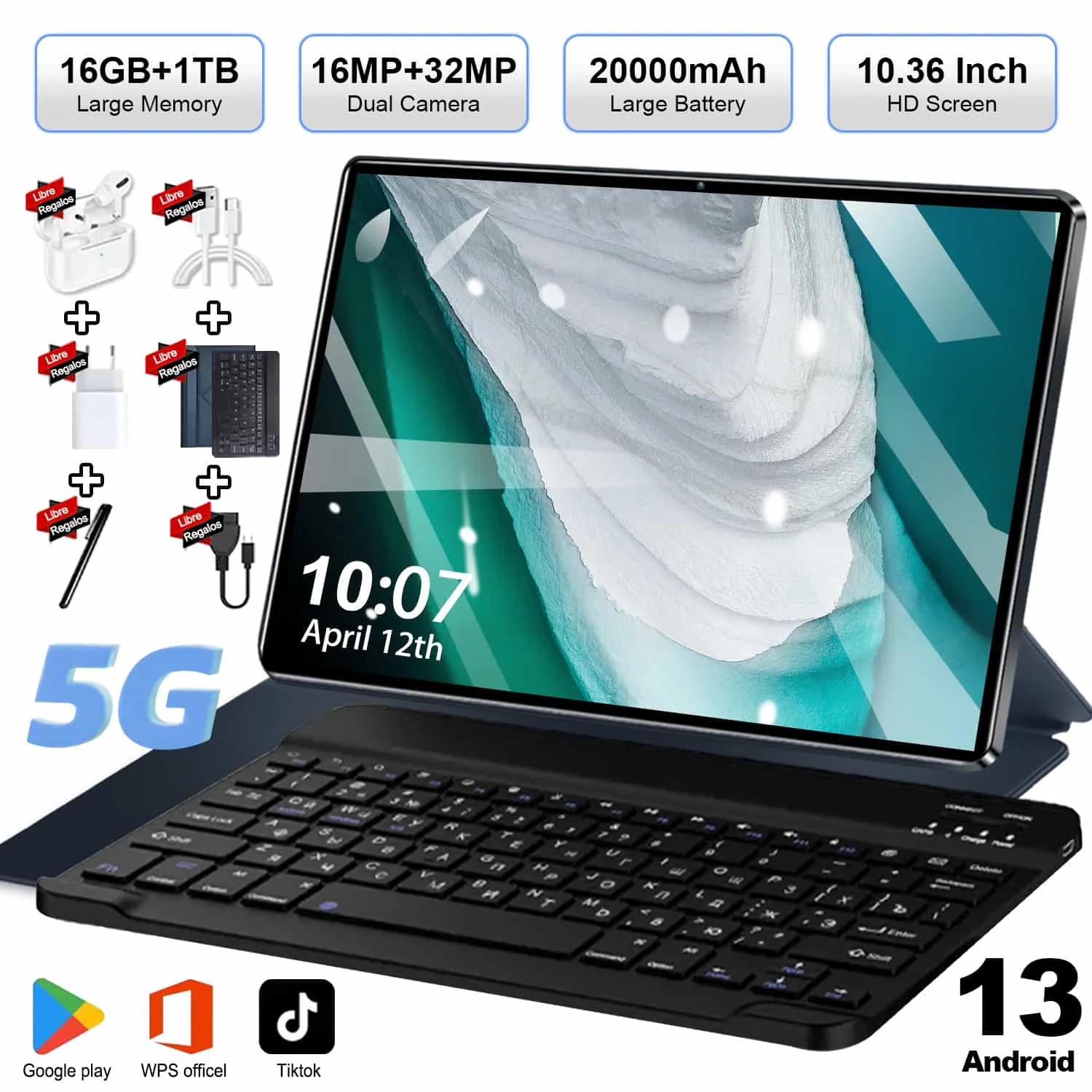 Tableta Android 2026 10.36 Pulgadas 16GB RAM 1TB Almacenamiento 12000mAh Batería Dual SIM WIFI Bluetooth GPS Google Play Soporte