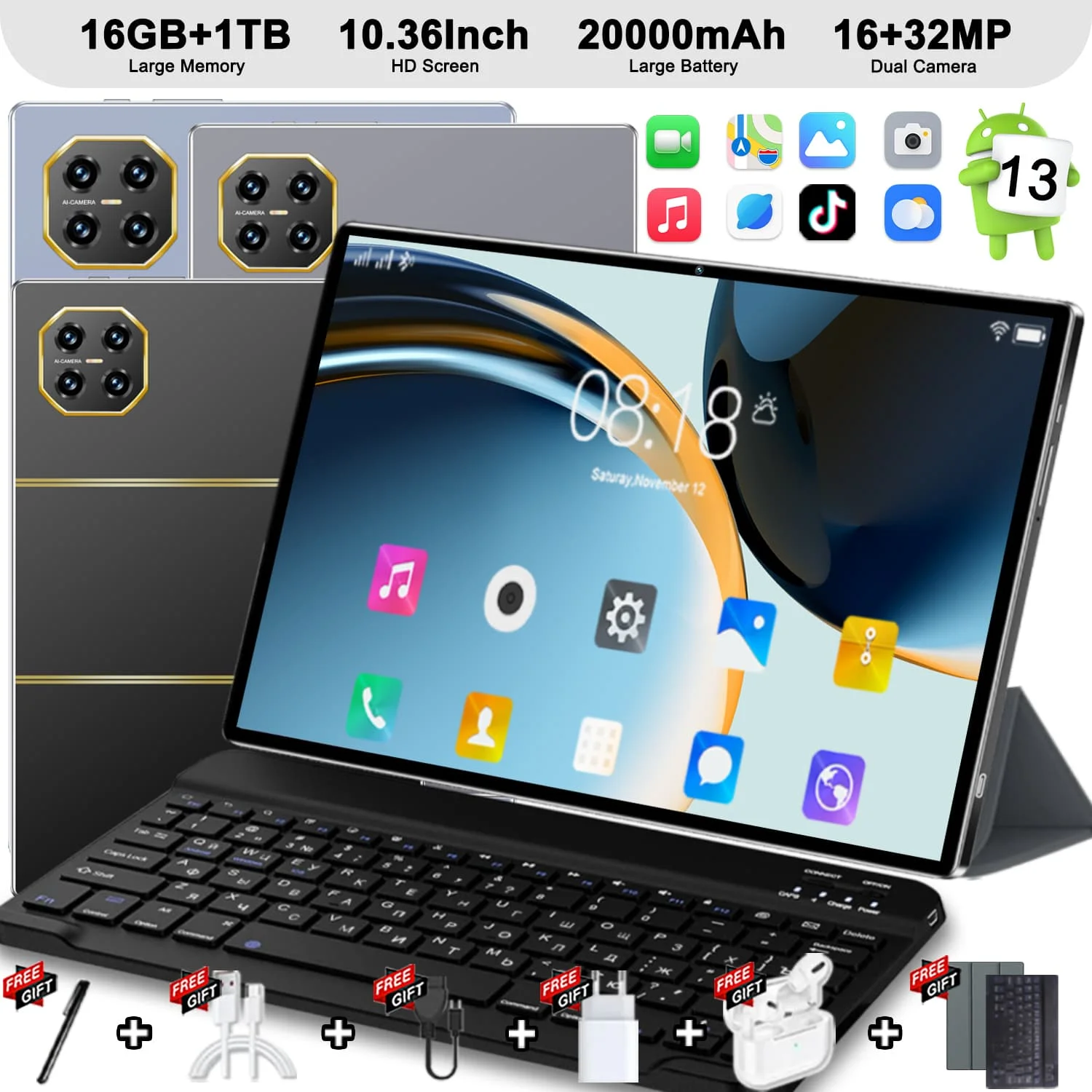 2025 nouvelle tablette intelligente mondiale 10.36 pouces Android 13 Pad 16GB 1TB double SIM 14 cœurs 4K HD 5G WIFI Bluetooth WPS 20000mAh tablettes