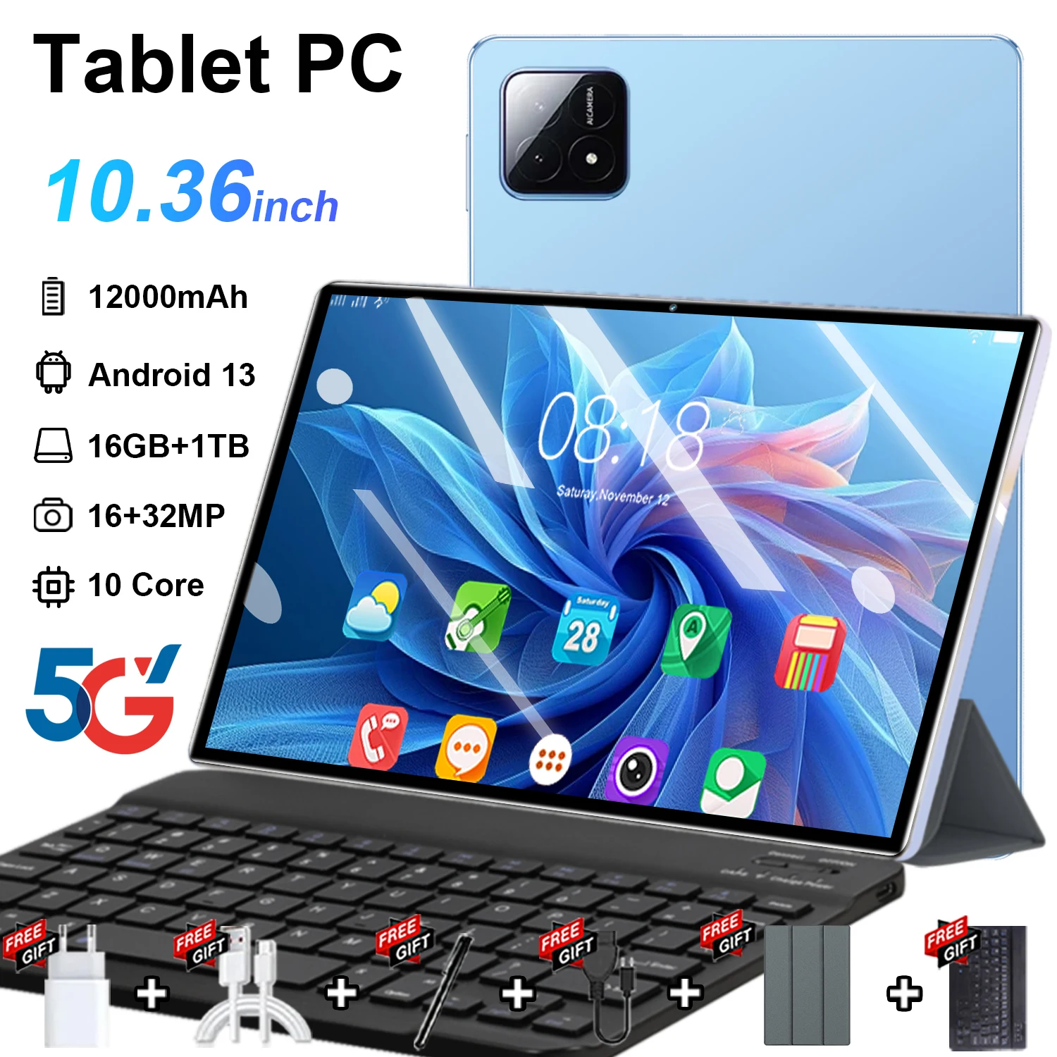 Tablette Android 10.36 pouces Android13.0 Google Play 10 cœurs double caméra double SIM 5G Bluetooth tablettes Wifi 16GB + 1TB ROM