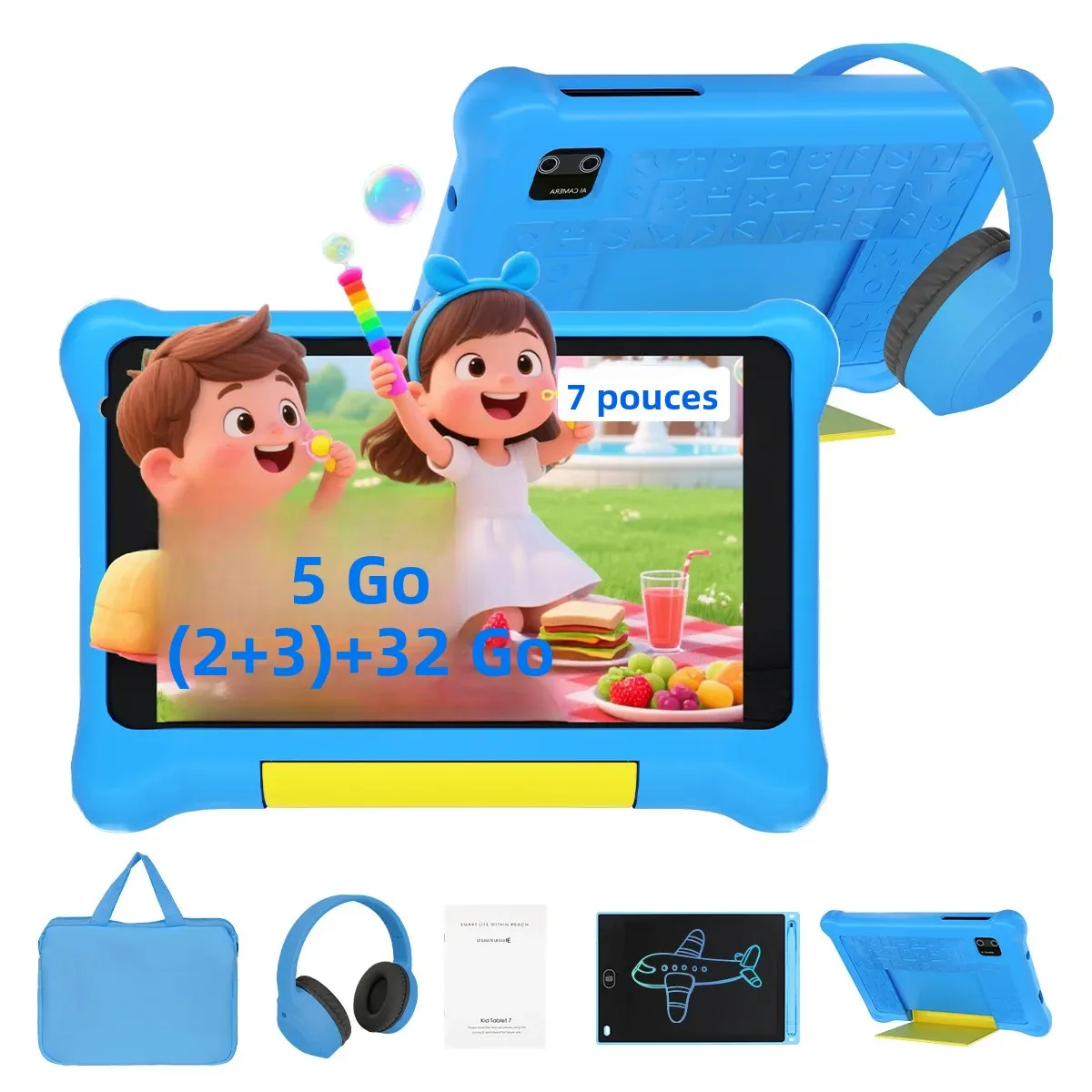 Tablette d'apprentissage pour enfants de 7 pouces, planche d'écriture, tablette à dessin, écouteurs, sac stylet, commandes parentaires, Android13 Quad Core, 5 go + 32 go