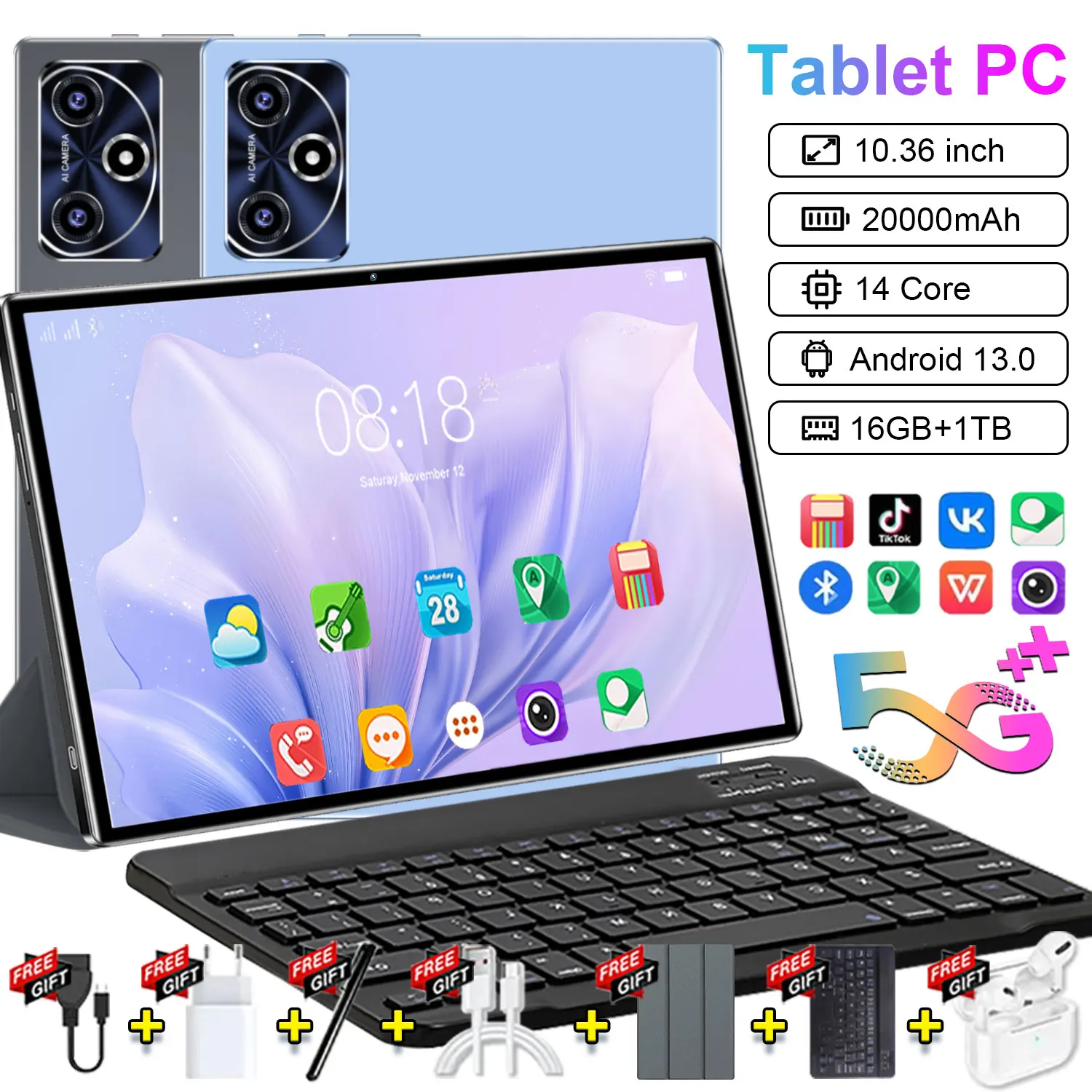 Tablette Android avec processeur phare à 14 cœurs, 10.36 pouces, 16 go de RAM, 1 to de stockage, Android 13, grande batterie 20000mAh, tablette réseau 5G