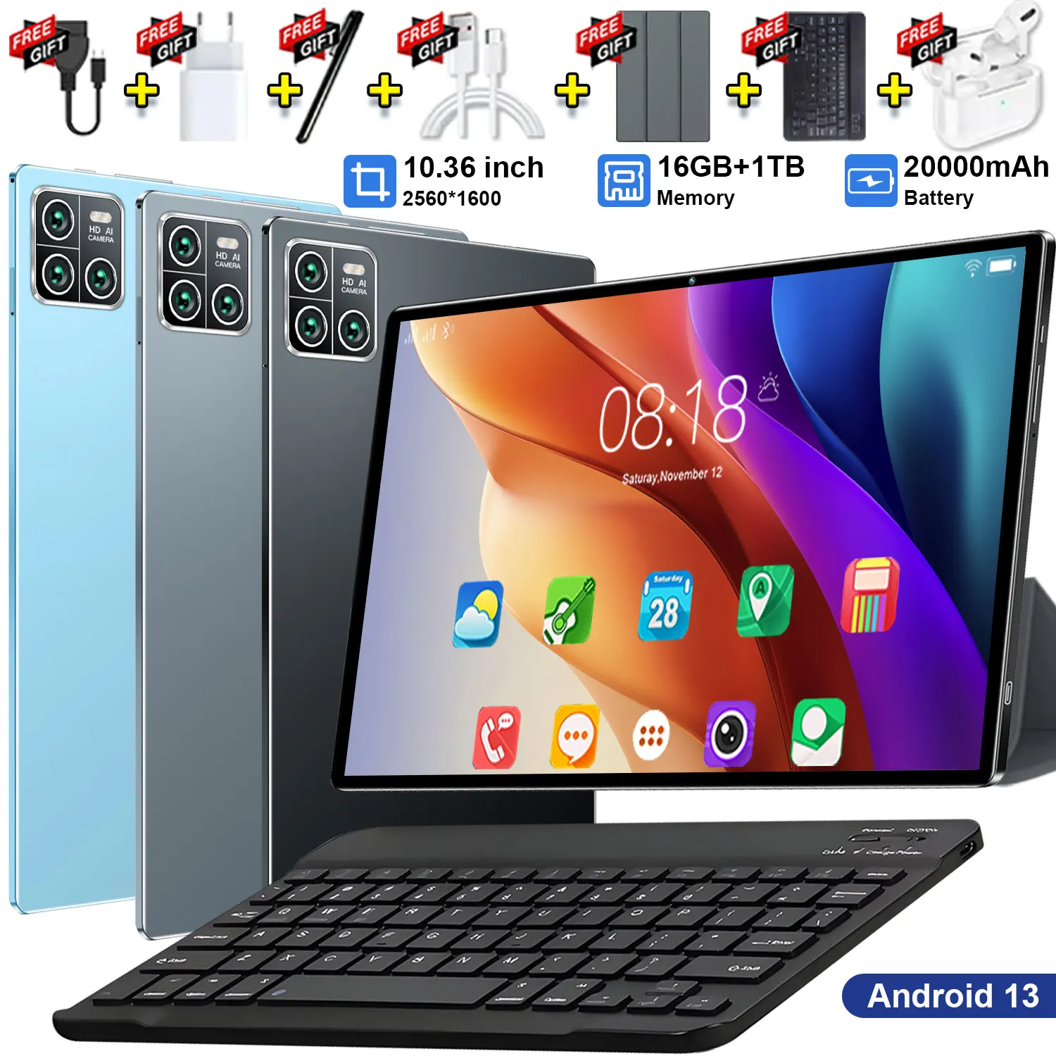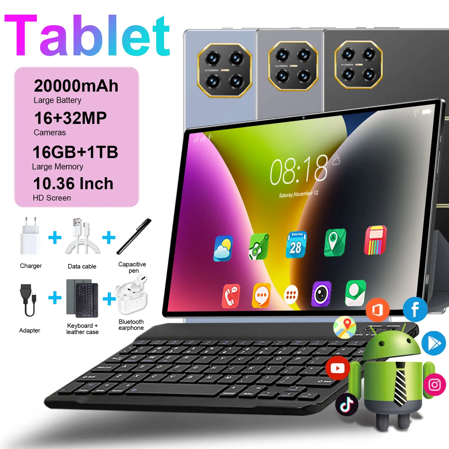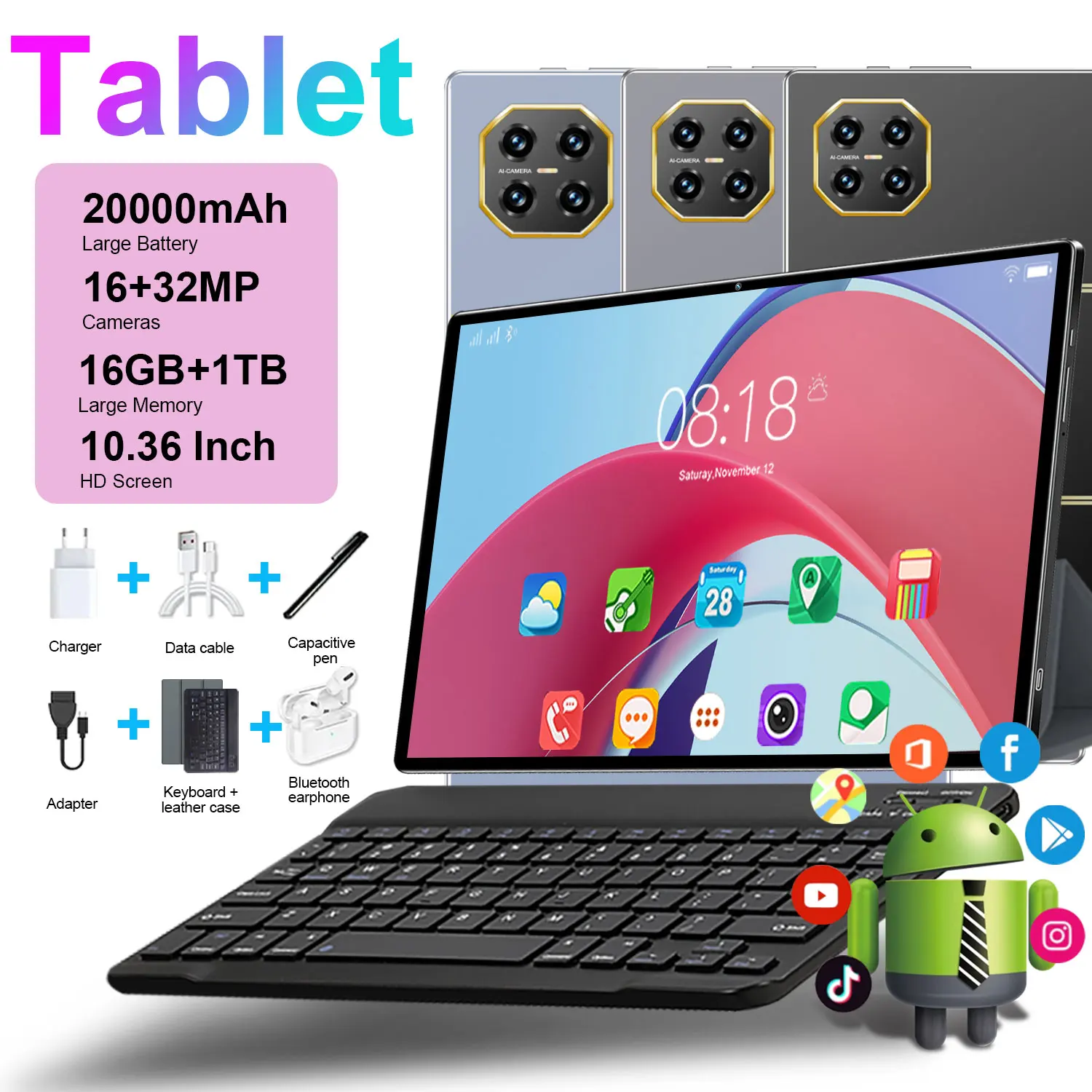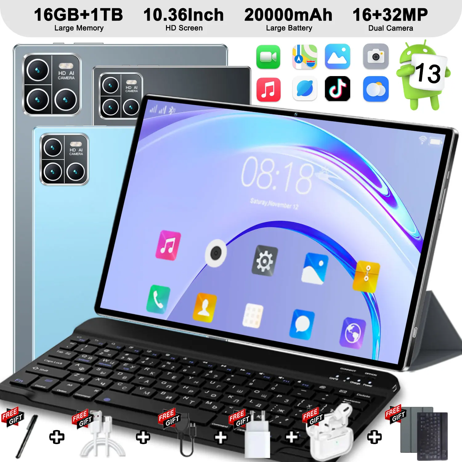 Nouvelle tablette mondiale 2026 de 10,36 pouces, Android 13, 16MP, 16 Go, 1 To, 14 cœurs, 4K HD, Google Play, 5G, Bluetooth, WPS, WIFI, 20000 mAh