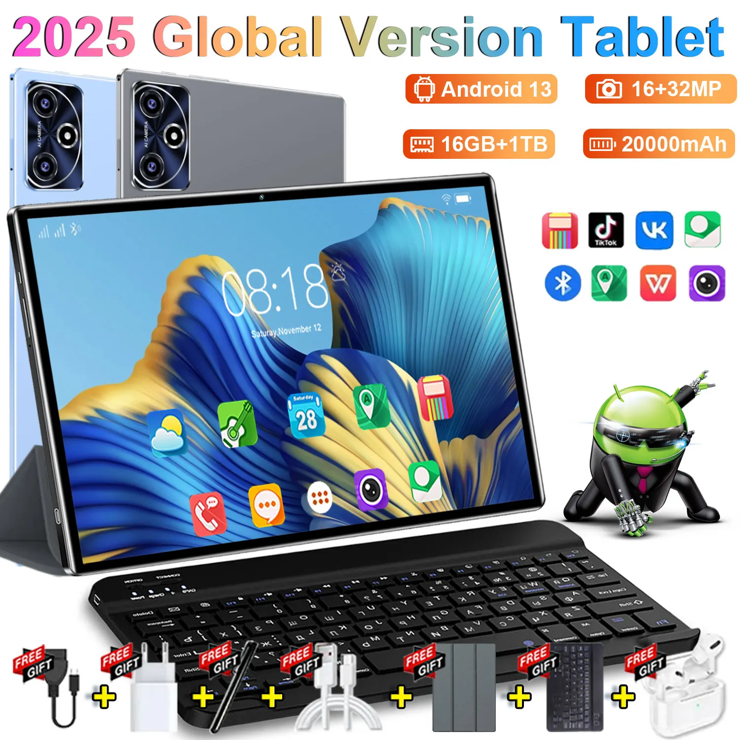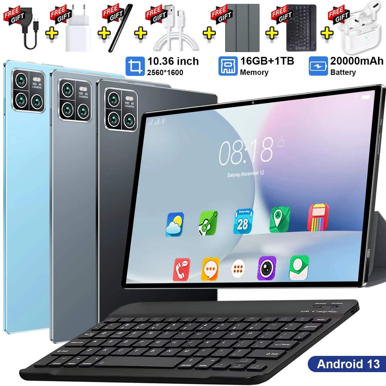 2025 Global nouvelle tablette 10.36 pouces Android 13 Pad Bluetooth WPS 16GB 1TB 14 cœurs 4K HD 5G WIFI 20000mAh tablettes