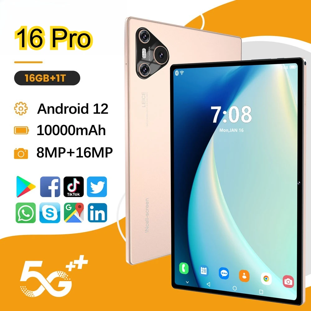 2026 nouveau Original 16 Pro tablette 10.1HD Android 12 tablettes pour enfants onglet Version mondiale 5G double SIM 10000mAh WIFI enfants tablette PC