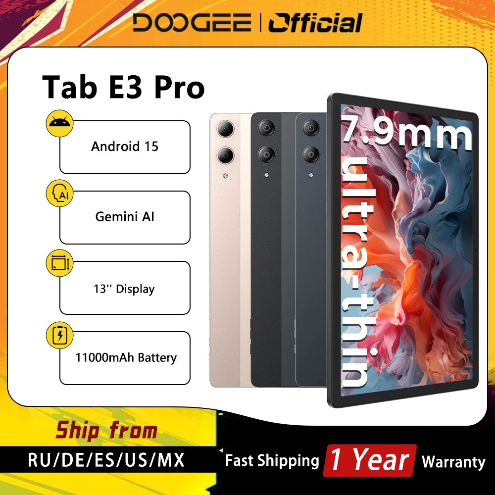 DOOGEE Tab E3 Pro tablette 32GB 256GB Android 15 Gemini AI 13 ''affichage 7.9mm Ultra-mince Helio G100 11000mAh batterie Smart Pad
