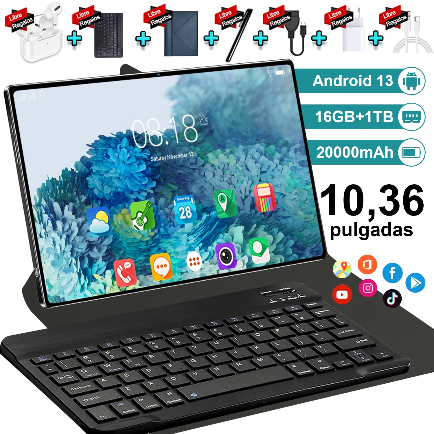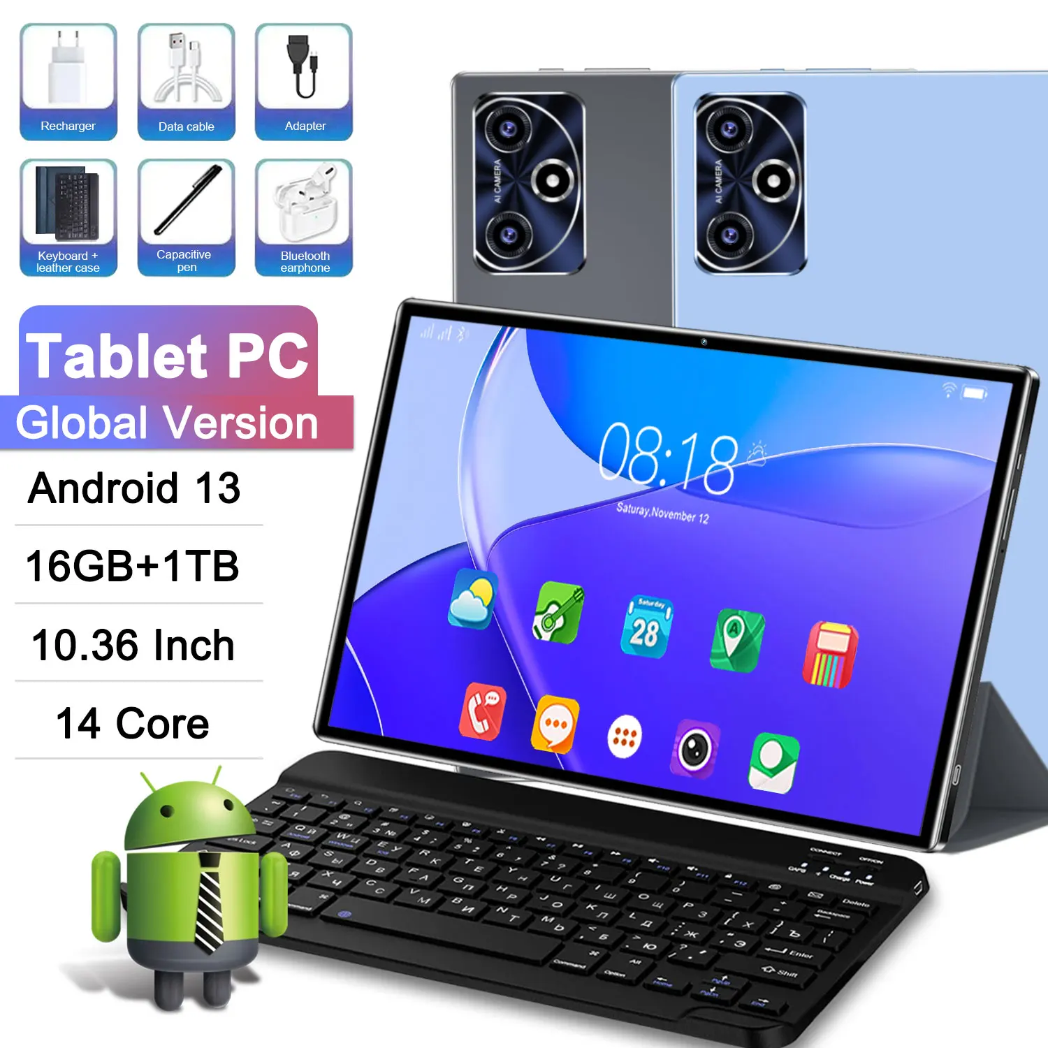 Nouvelle Version mondiale tablette intelligente 10.36 pouces Android 13 Pad 16GB 1TB 14 cœurs 4K HD 5G WIFI Bluetooth WPS 20000mAh tablettes