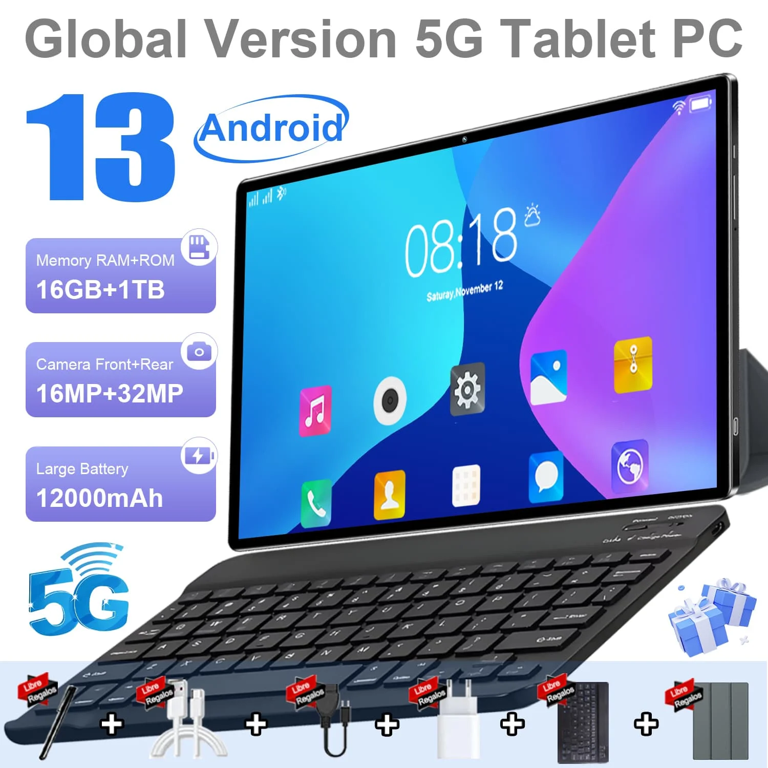 Tablette Android 5G 10.36 pouces, 20000mAh, 12 go + 512 go, double caméra, WIFI, Bluetooth, GPS, double SIM, dispositif de jeu