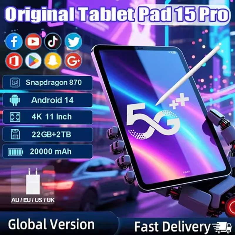 2025 Original PAD 15 Pro tablette Android 14 Snapdragon870 11 pouces HD 22GB + 2TB 20000mAh 5G double SIM Bluetooth WiFi tablettes tablette PC