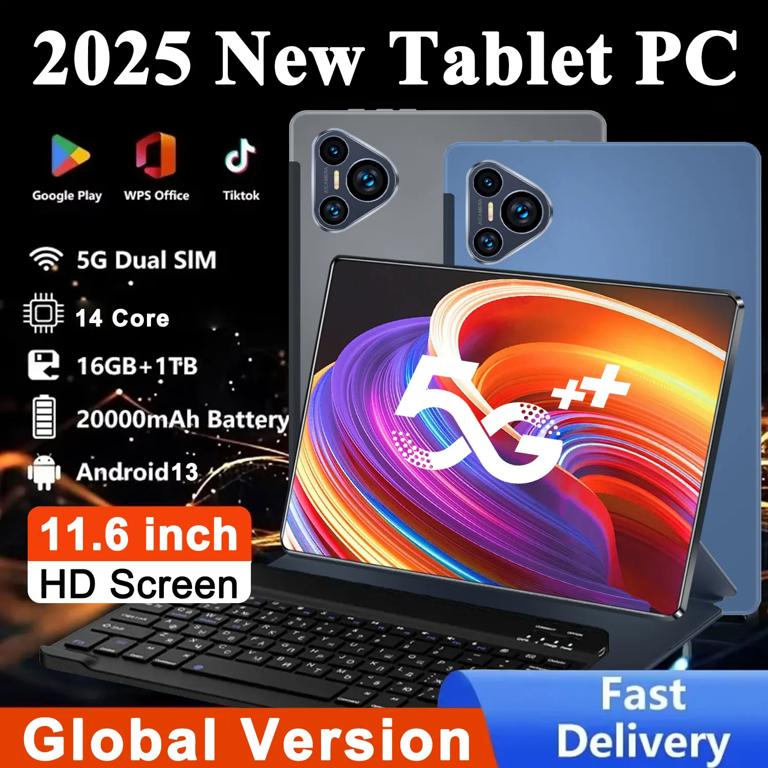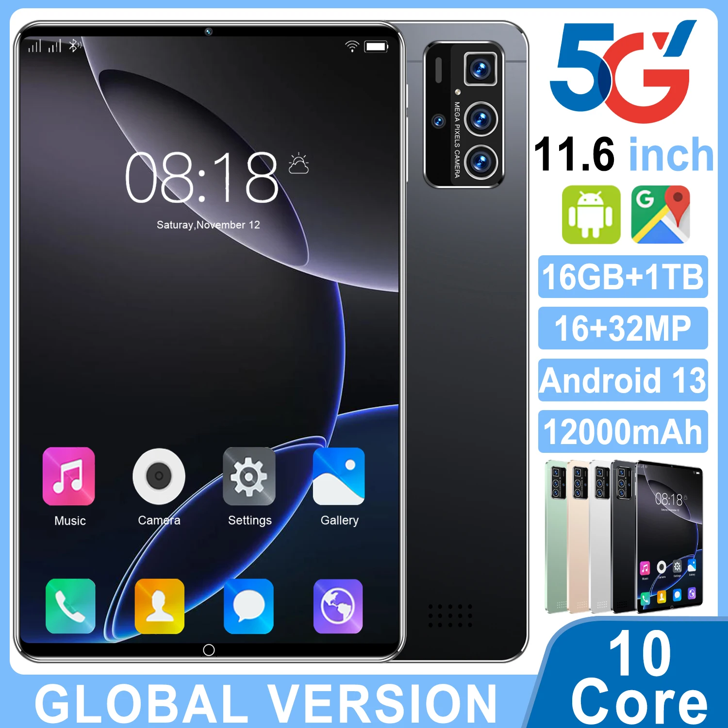 Tablette 2024 originale Version mondiale, 11.6 pouces, HD, 4K, Android 13, 16 go + 1T, 12000mAh, 5G, double SIM, appel téléphonique, WiFi, GPS