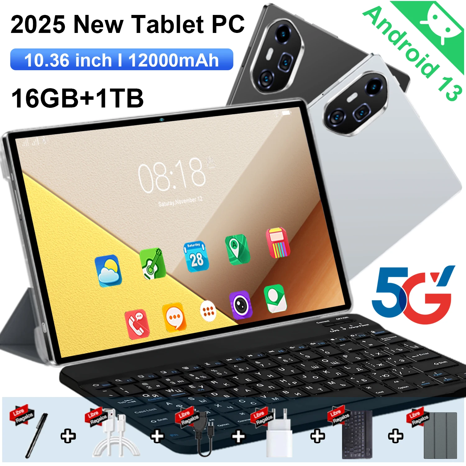 Tablette 16 Go de RAM 1 To de ROM 5G 2025 | Pavé Android 4K de 10,36 pouces | Grande batterie 12 000 mAh | Appel téléphonique double SIM pris en charge