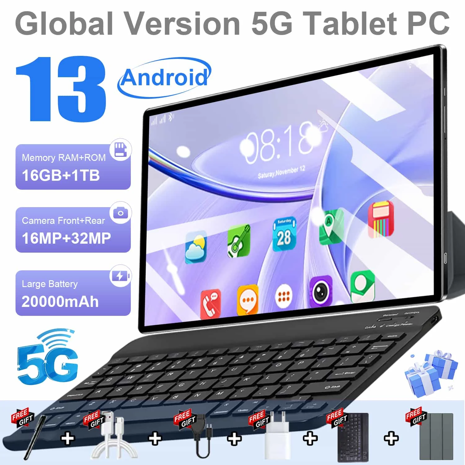 Tablette Android 13, 10.36 pouces, 4K, 5G, double SIM, faible lumière bleue, écran Anti-éblouissement, 12 go de RAM, 512 go de ROM, batterie 20000mAh, WiFi, Bluetooth