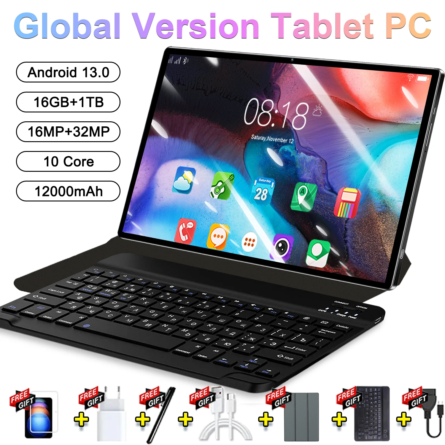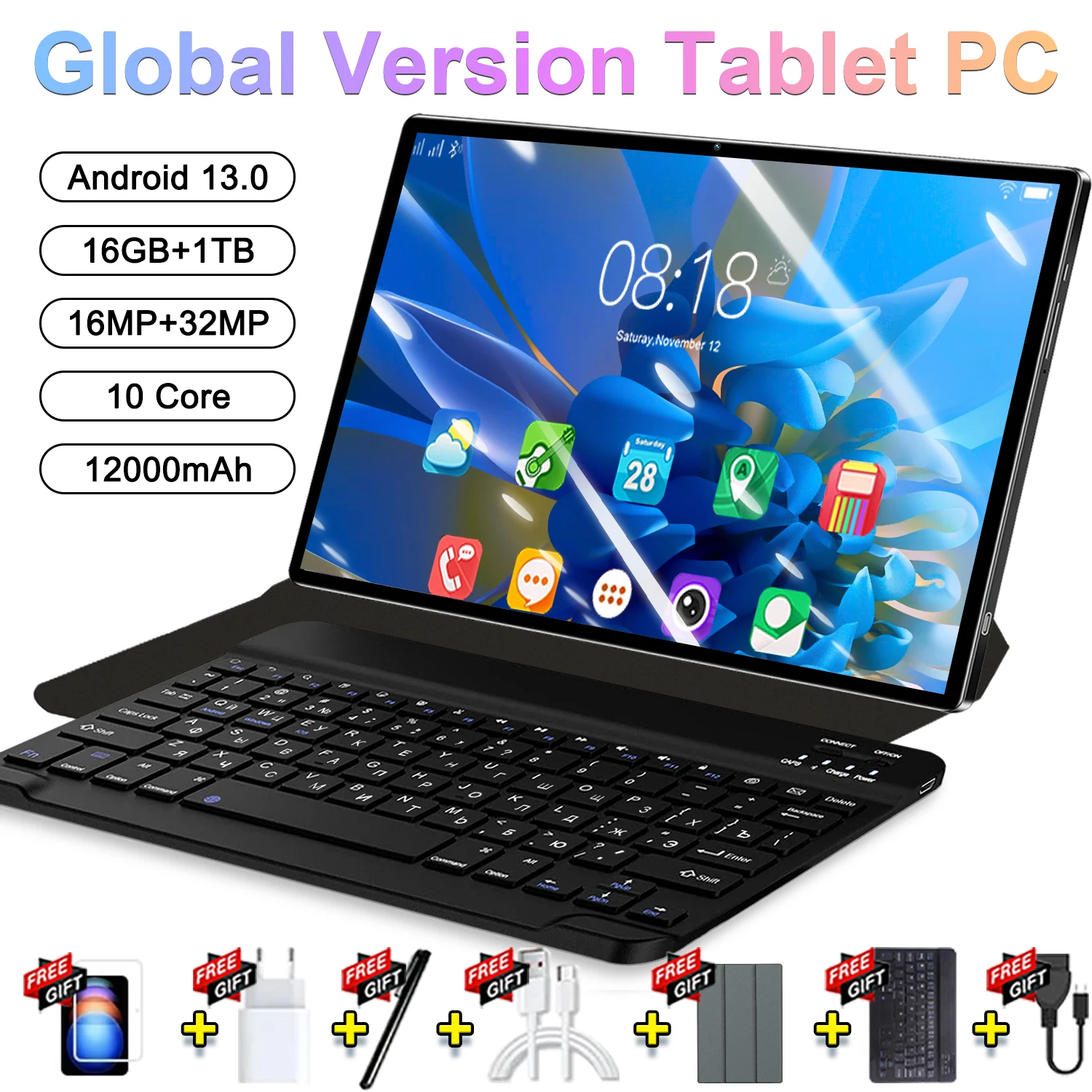 2025 Global nouvelle tablette 10.36 pouces Android 13 Pad 16GB 1TB haute définition WIFI 4K HD 5G Bluetooth WPS 14 cœurs 20000mAh tablettes