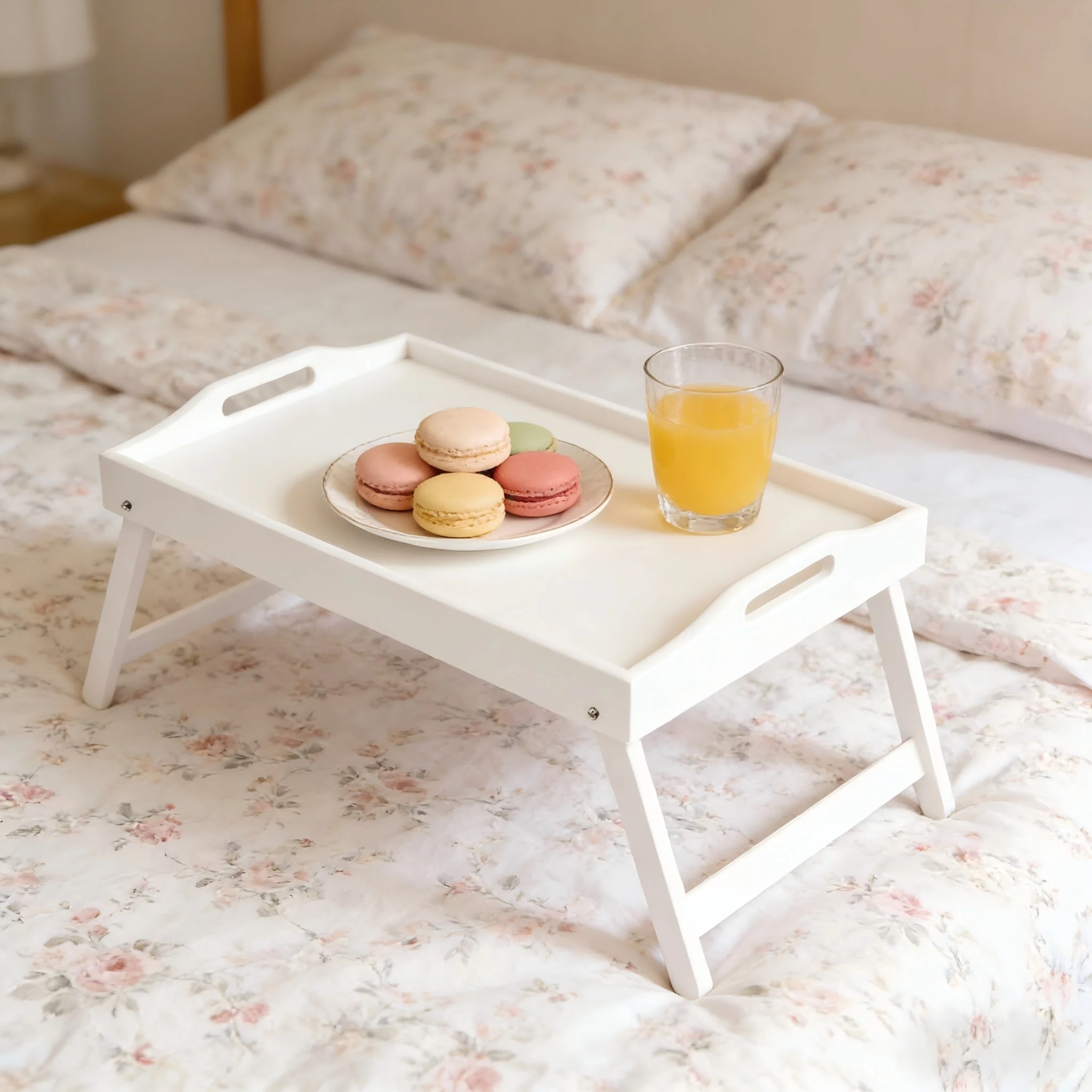 Plateau de lit en bambou avec pieds et poignées pliables, plateau de service multifonctionnel pour le petit-déjeuner, les repas, le dessin, comme bureau portable et plateau à collations