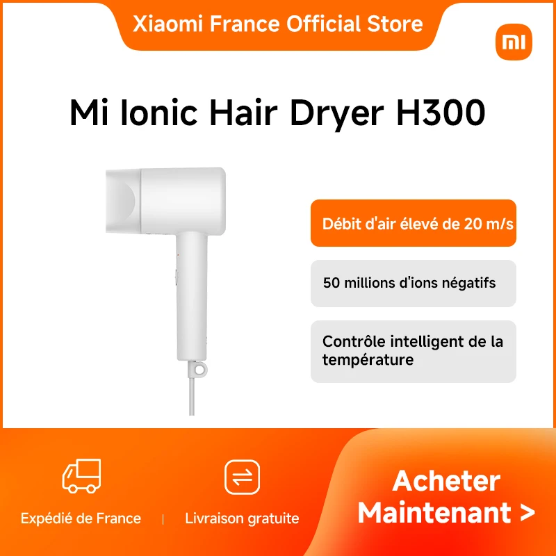 [Officiel] Mi Ionic Hair Dryer H300 | Boîtier ultra-court de 9,5 cm | Débit d'air ultra-élevé de 20 m/s | 50 millions d'ions négatifs | Contrôle intelligent de la température à 57°C