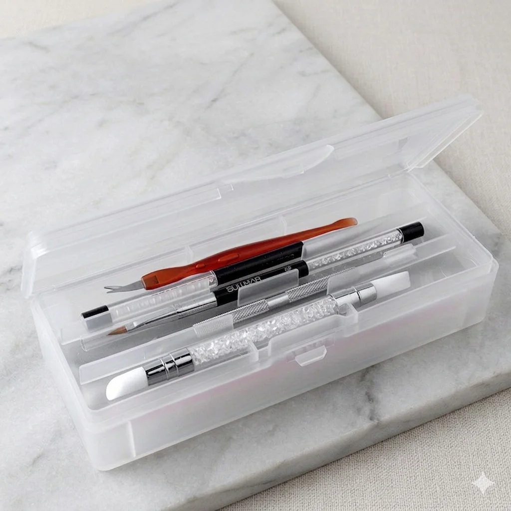 Boîte de rangement transparente rose pour Nail Art, 1 pièce, boîte de rangement rectangulaire en plastique pour outils de Nail Art, organisateur pour pincettes, tondeuses, stylos et pinceaux