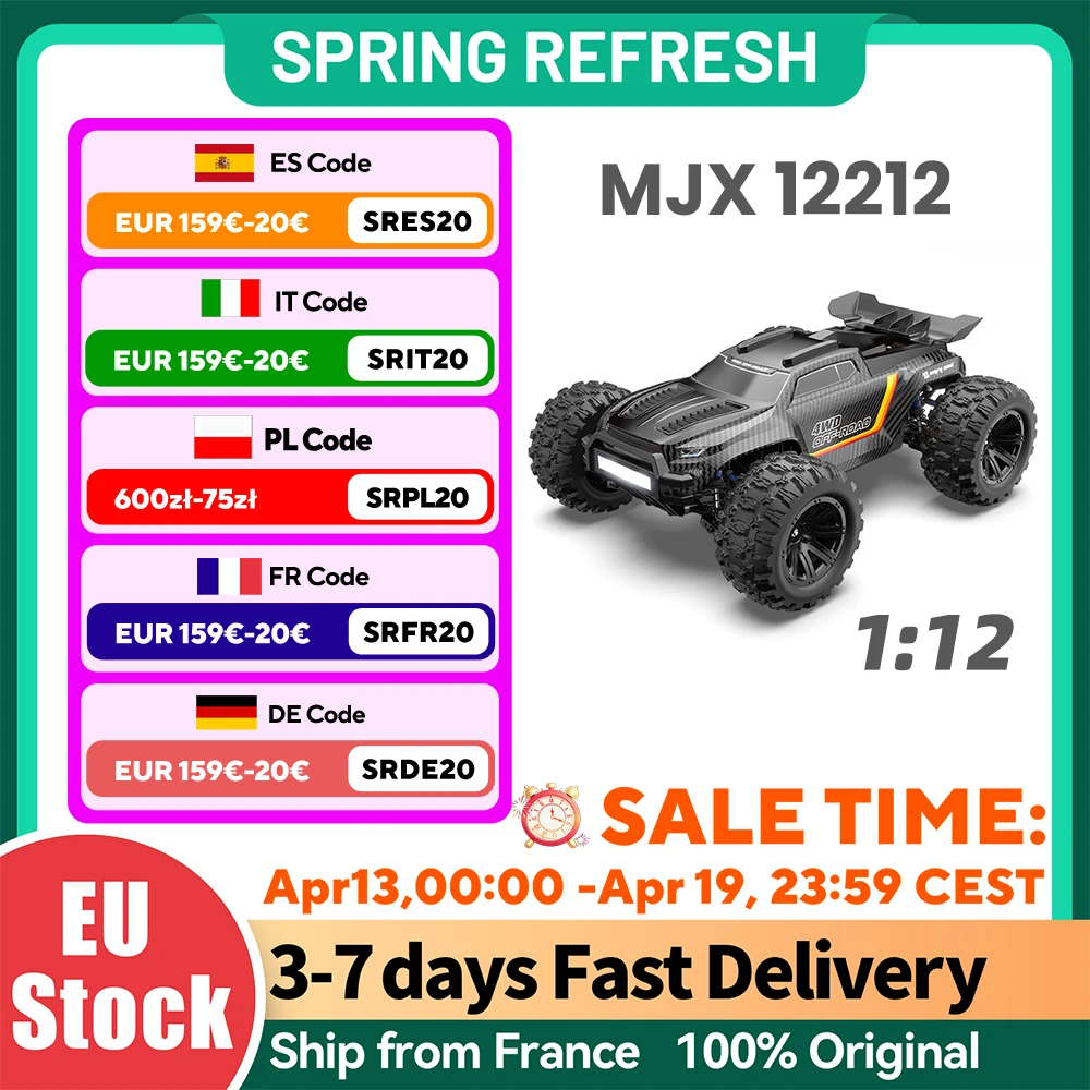MJX 12212 1/12 Voiture RC sans balais à grande vitesse 58 km/h, véhicule tout-terrain télécommandé 2,4 G avec batterie 11,1 V, ESC 60A avec moteur 3660, amortisseur en métal, RTR, comme jouet cadeau