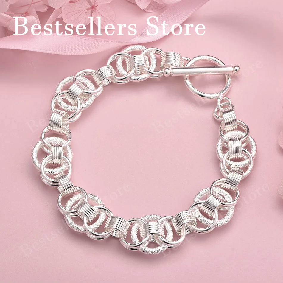 Bracelet à double anneau exquis en argent sterling 925 de 8 pouces, accessoires de bijoux de fête de mariage à la mode pour hommes et femmes