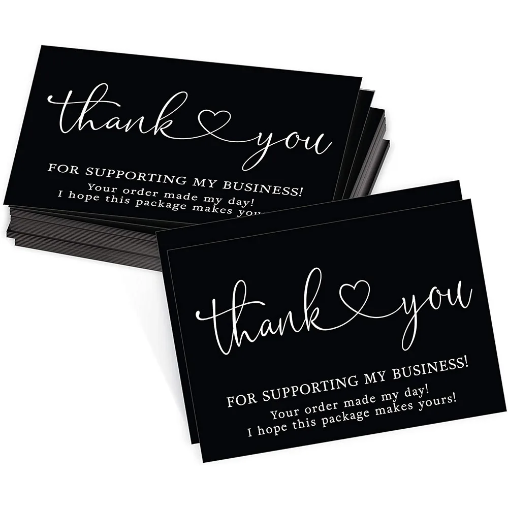 Carte de remerciement pour votre commande, 50 pièces, cartes noires et blanches pour soutenir les petites cartes de remerciement pour votre commande pour magasin de détail