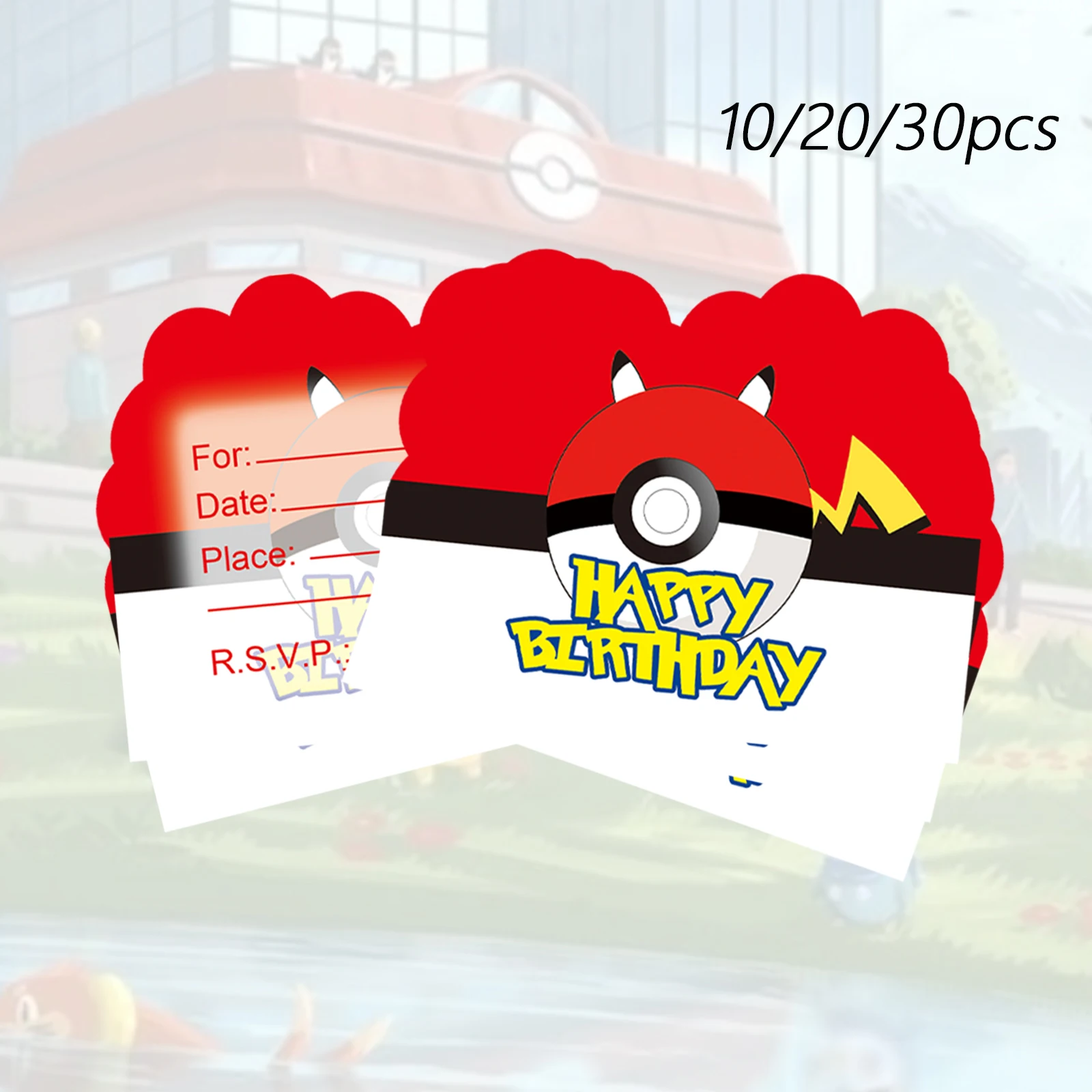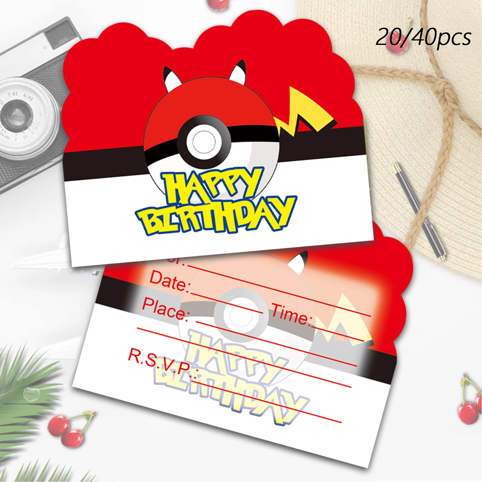 Cartes d'invitation d'anniversaire Pokémon, décorations de fête Pokémon, fournitures de fête Pikachu, cartes d'invitation Friends Pikachu, 20/40 pièces