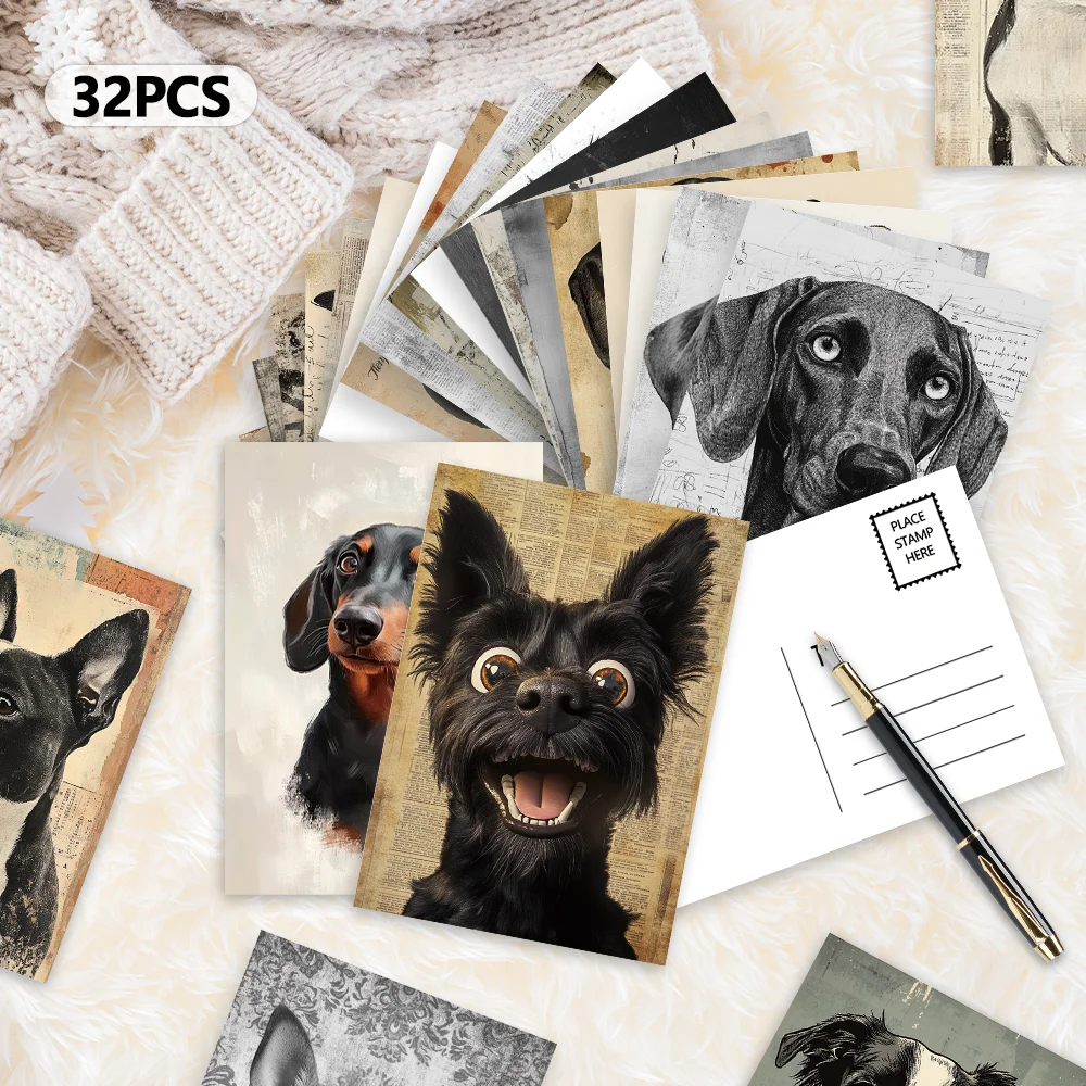32 cartes postales vintage, thème chien de dessin animé, décoration intérieure de chambre, cartes, autocollants muraux, cartes de message, cartes de vœux, affiche