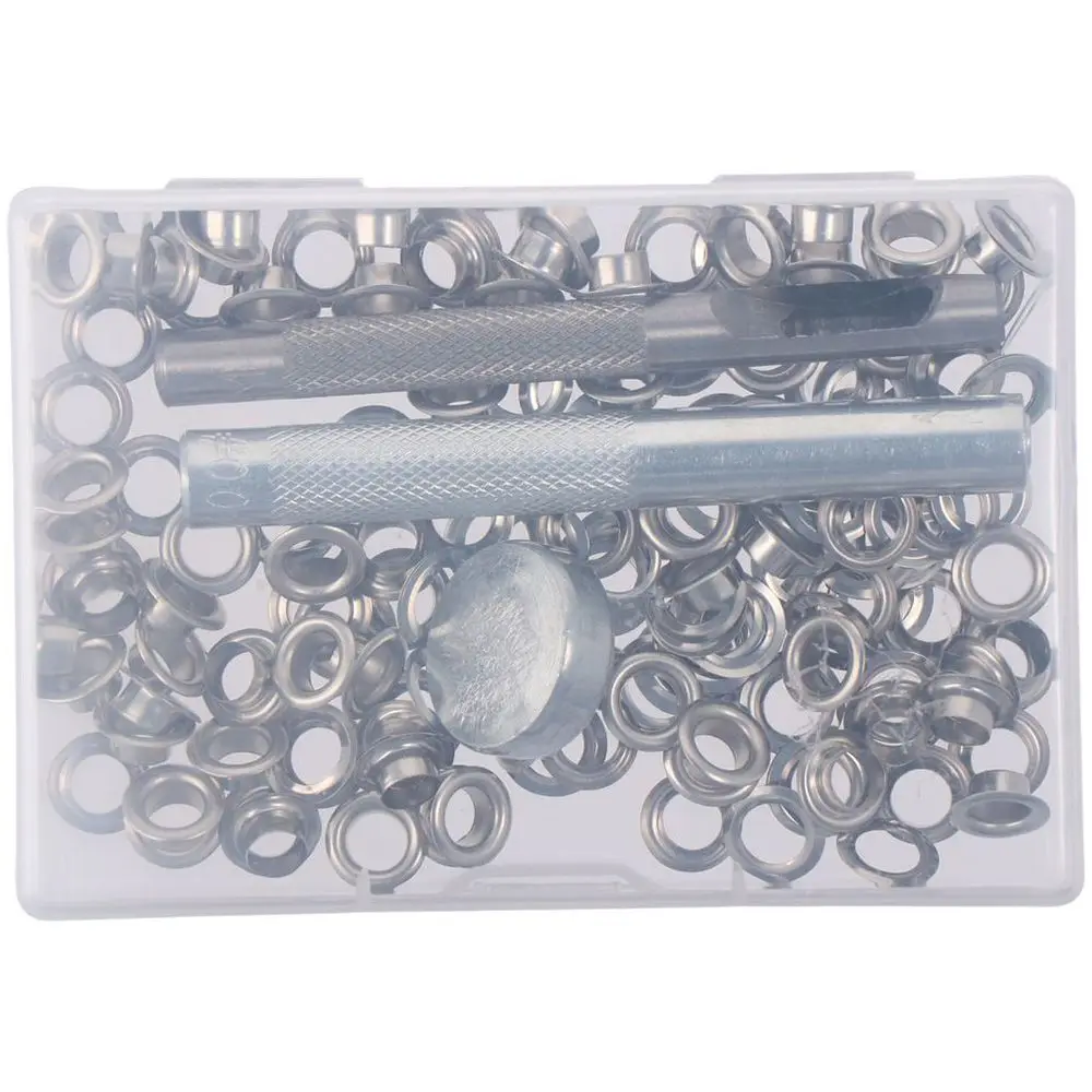100 ensembles Kit d'œillets épais 1/4 pouces Kit d'outils d'œillets en métal argenté cuir, tissu, bâche, chaussures, vêtements