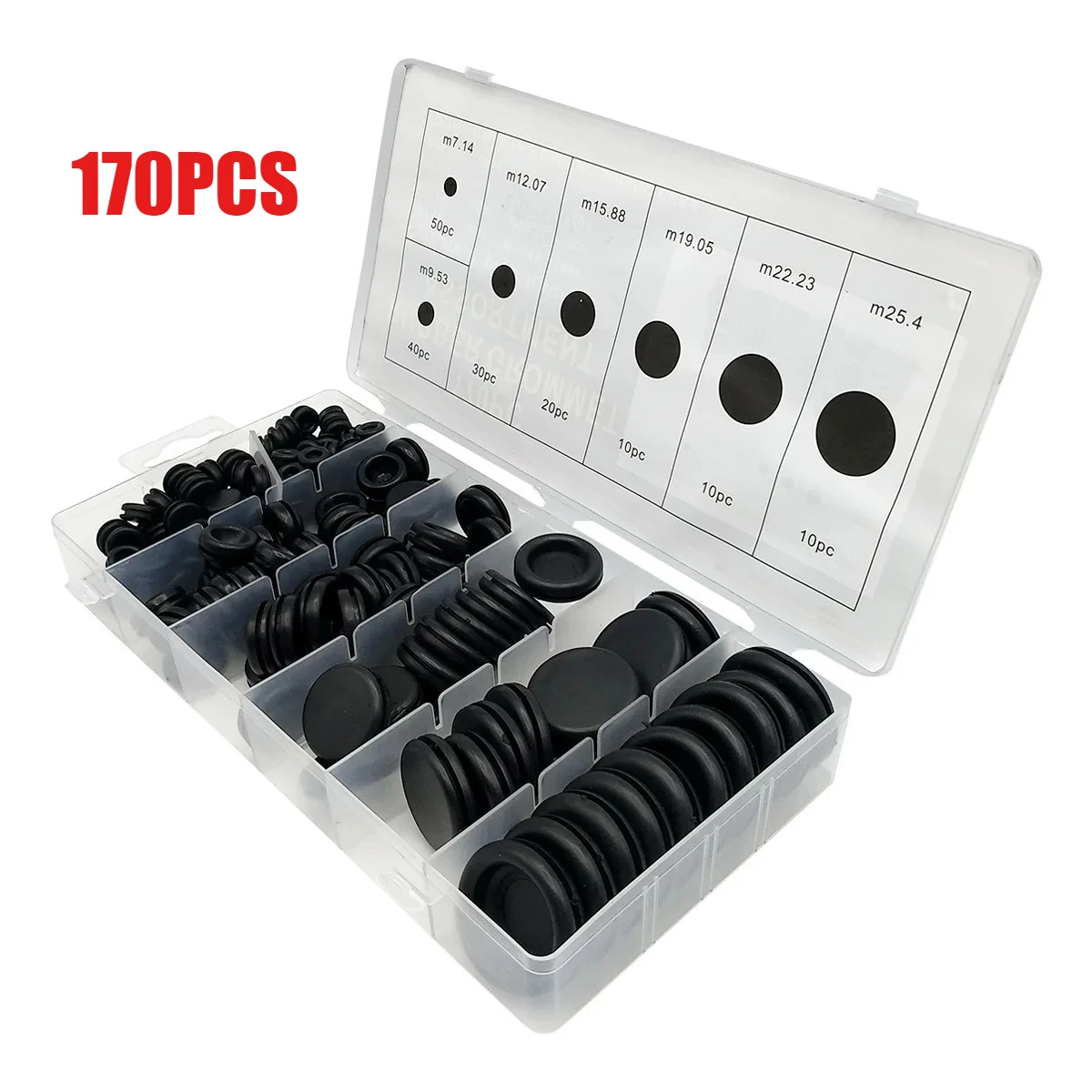 Kit de bouchons de trou de pare-feu à œillets en caoutchouc, 170 pièces, kit de rondelle de fil pour le perçage 1/4 "3/8" 1/2 "5/8" 3/4 "7/8" 1 ", kit combiné de câblage
