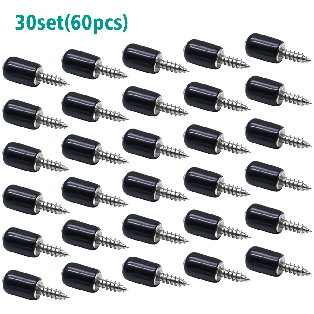 30 ensembles (60 pièces) de vis autotaraudeuses noires à tête Phillips avec manchons en caoutchouc pour le support des armoires, des placards et des étagères en verre.