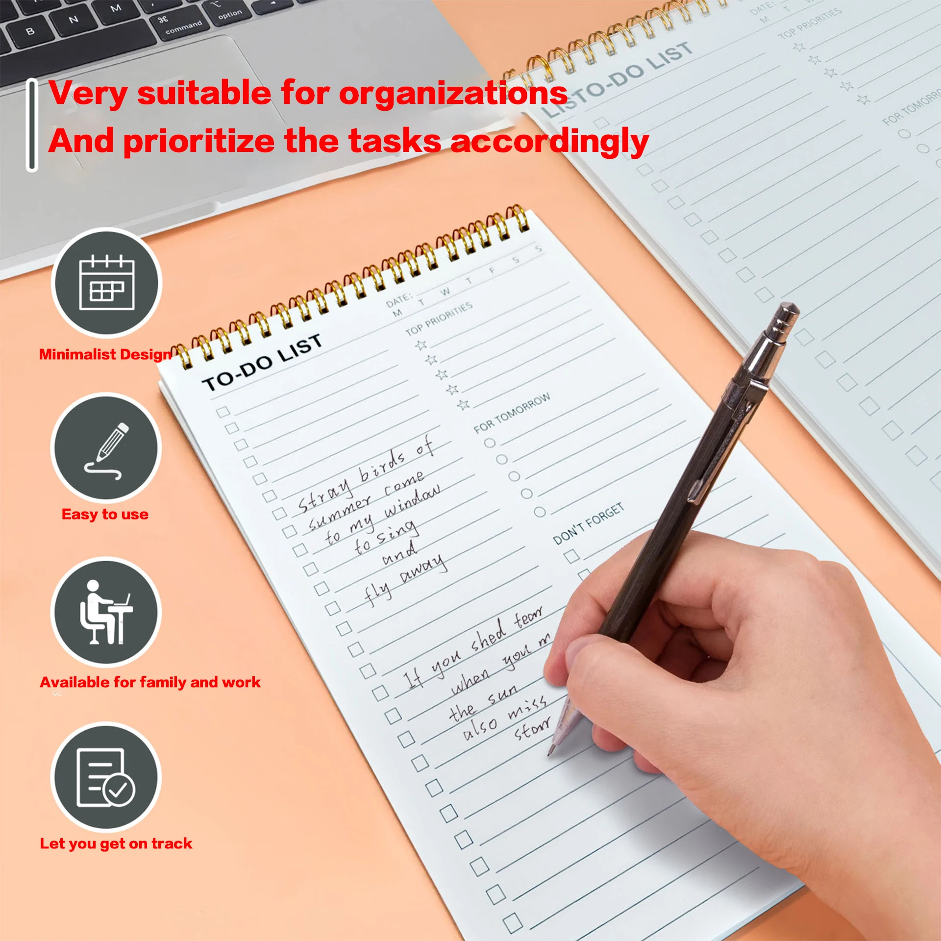 Bloc-notes en spirale pour liste de choses à faire : avec plusieurs Sections fonctionnelles, carnet de planification quotidien - Bloc d'agenda organisateur de liste de contrôle des tâches pour