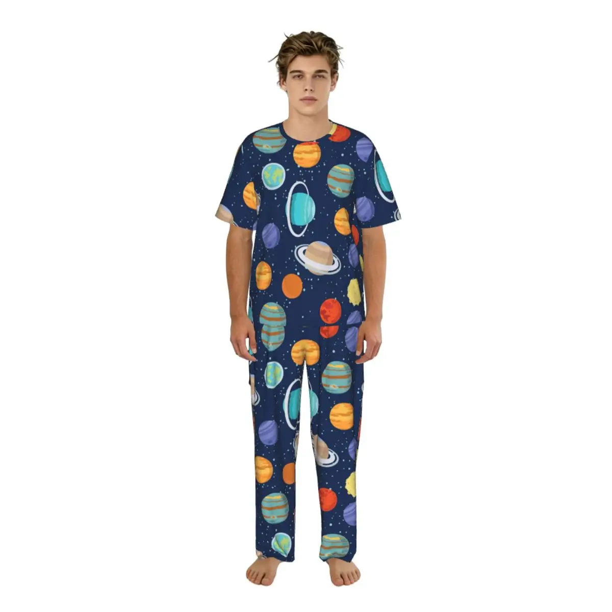 Ensembles de pyjamas décontractés pour hommes, ensembles à manches courtes et pantalons, vêtements de nuit pour hommes, astronaute, Terre, Saturne, fusées et étoiles, vêtements de maison