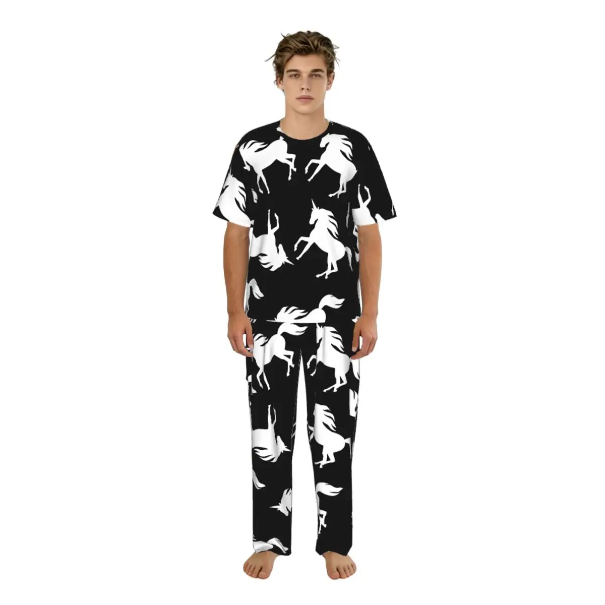 Pyjama pour homme, ensemble de vêtements de nuit à manches courtes et pantalon long, motif licorne sauteuse, cheval mythique, vêtements de maison d'été