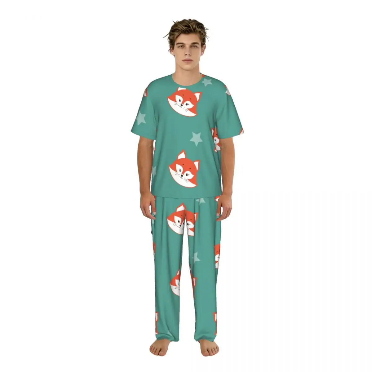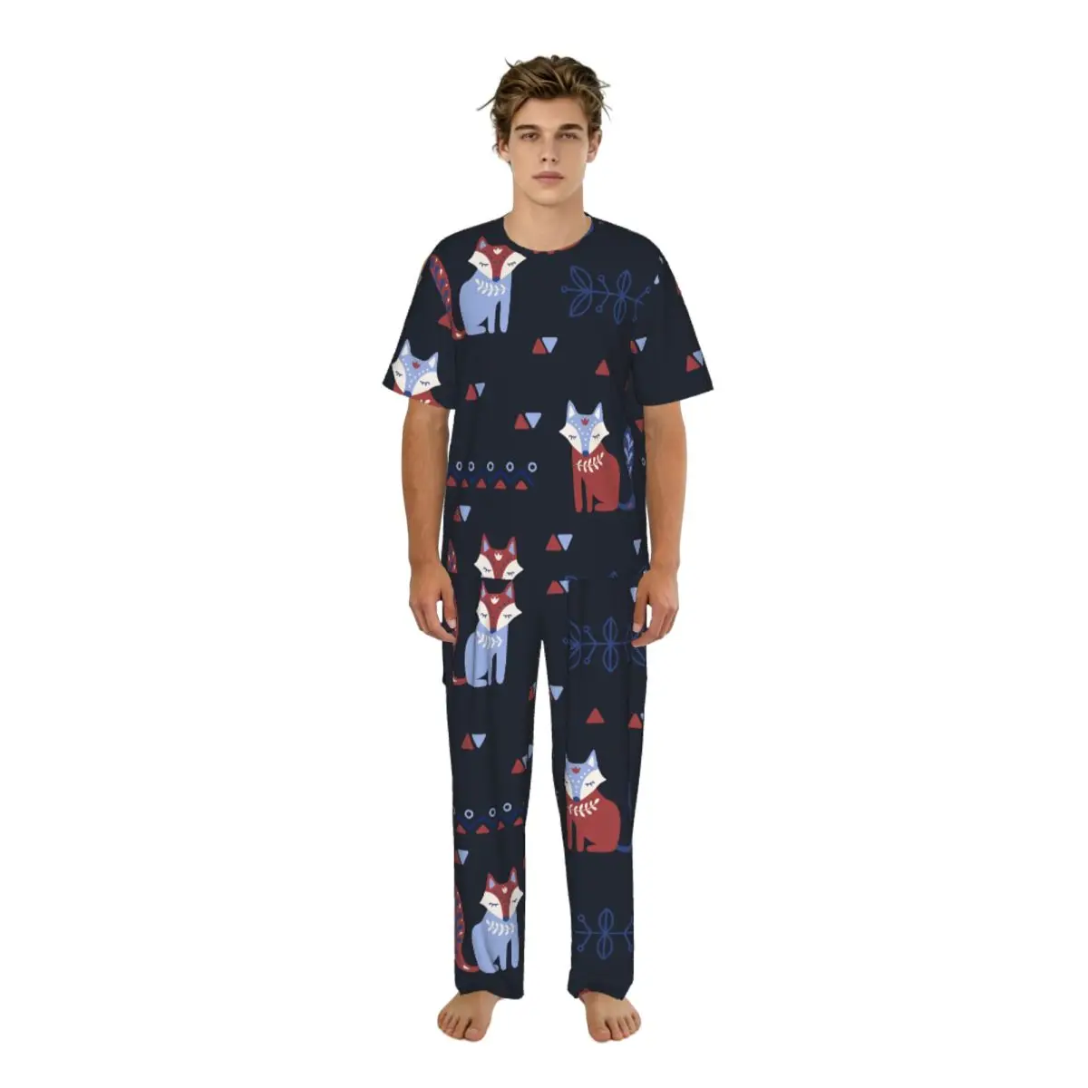 Pyjama pour hommes, costume à manches courtes et pantalon long, motif renard, ensemble de vêtements de nuit d'été pour la maison