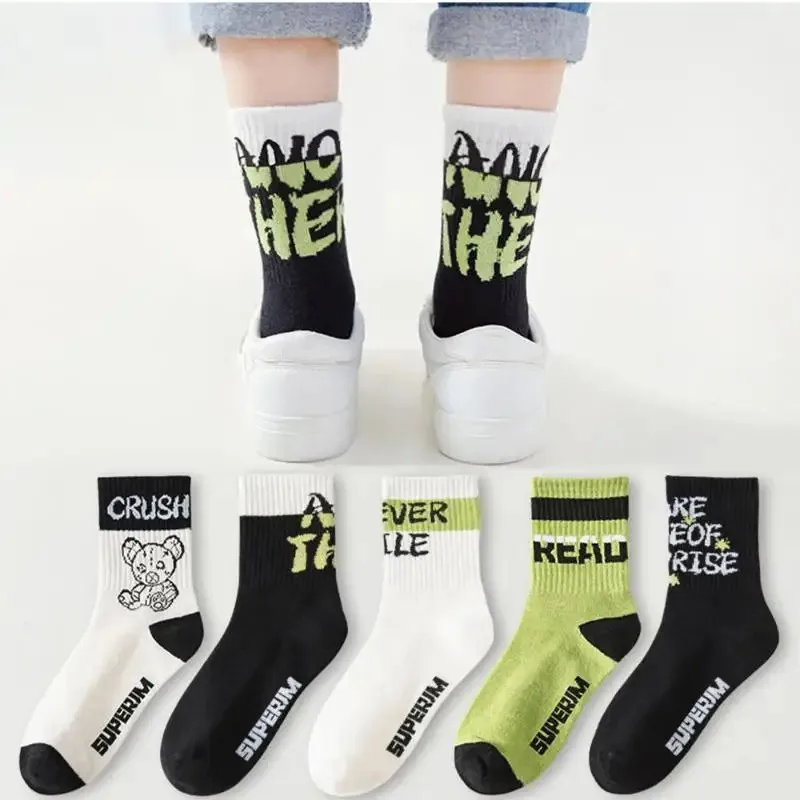Chaussettes d'automne pour enfants, chaussettes en coton pour petits et grands garçons, chaussettes moyennes à motif de dessin animé pour bébé, 5 paires/sac
