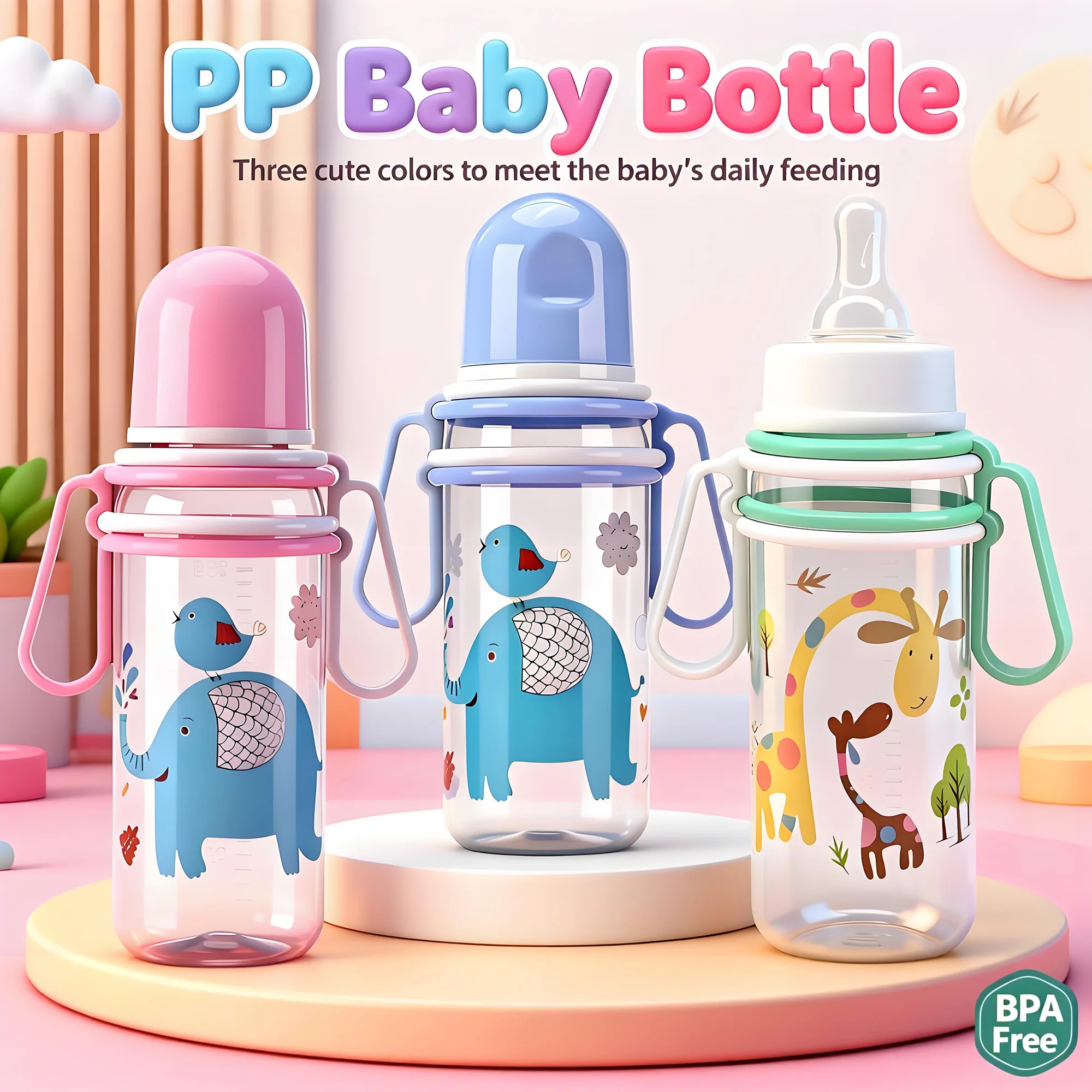 Biberon de dessin animé Anti-étouffement de 330ml pour nouveau-nés, matériau PP sans BPA, coffret cadeau pour nourrissons de 0 à 12 mois