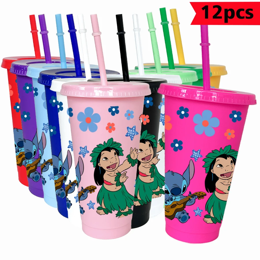 Gobelet en plastique de couleur Disney Stitch Mulan, 26oz, ustensiles pour fête d'anniversaire, jus, tasse à café, 12 pièces/paquet