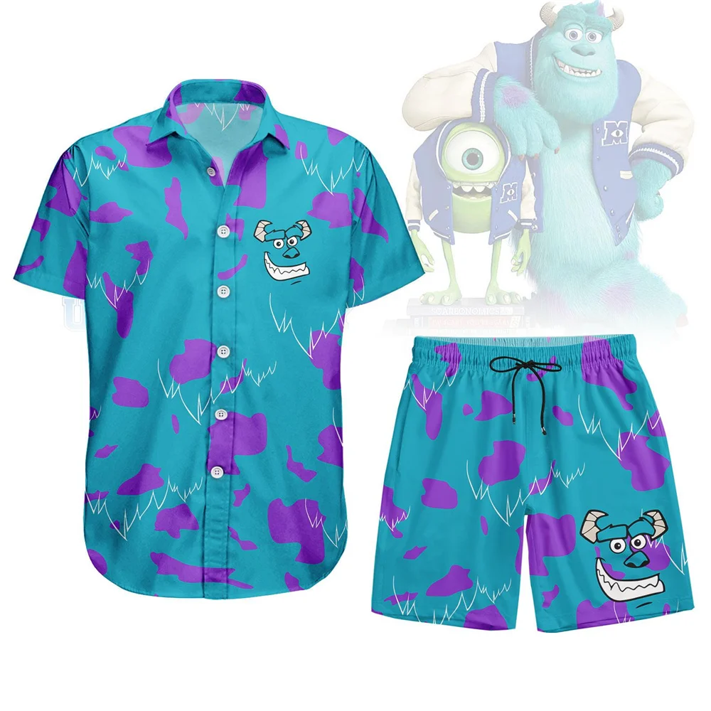 Monsters Inc. Short chemise hawaïenne Maori, chemise mignonne à boutons de vacances, short Cosplay Maori, voyage d'été Disney, tenue décontractée