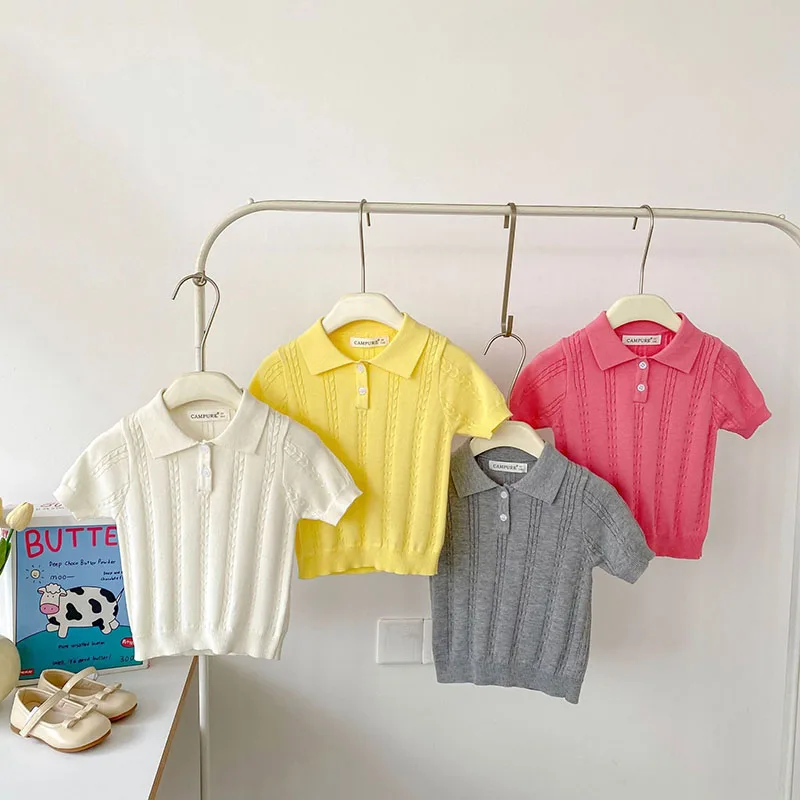 Chemises Polo d'été 2026 pour Enfants 18M-8Y, T-shirts en Maille Couleur Unie pour Filles, Vêtements Amples et Respirants pour Enfants, Hauts Décontractés pour Garçons